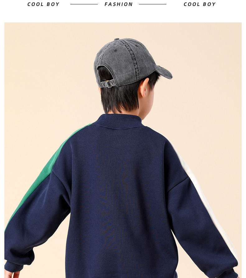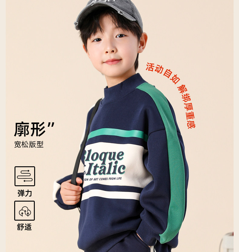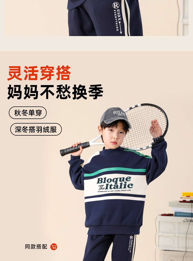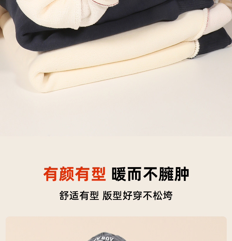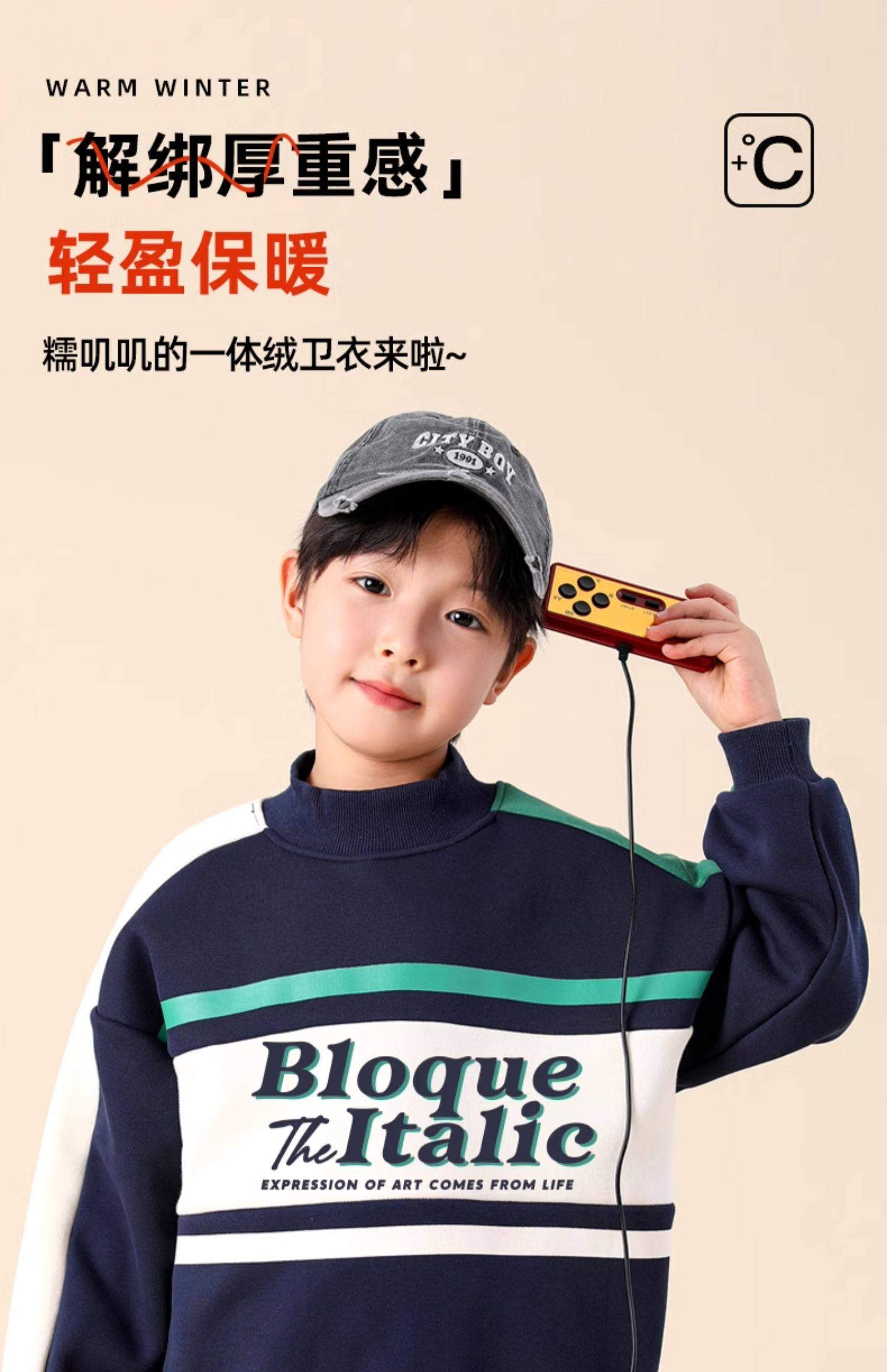 贝田2024新款冬季男童加绒卫衣半高领一体绒儿童加厚酷帅炸街上衣