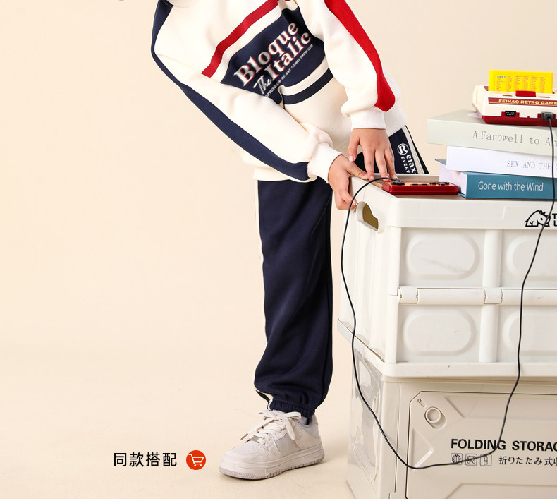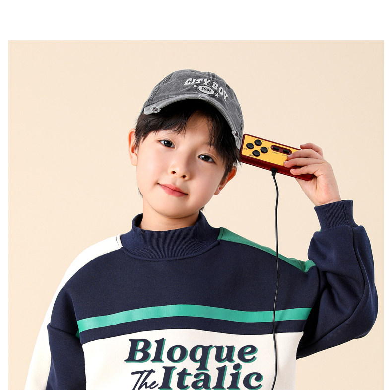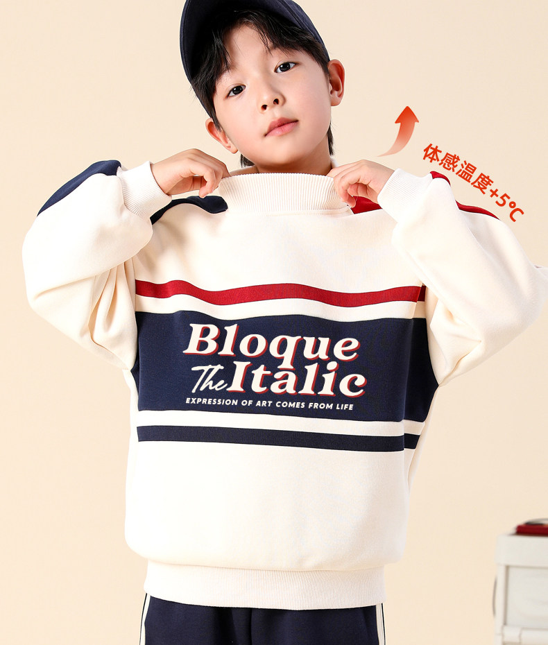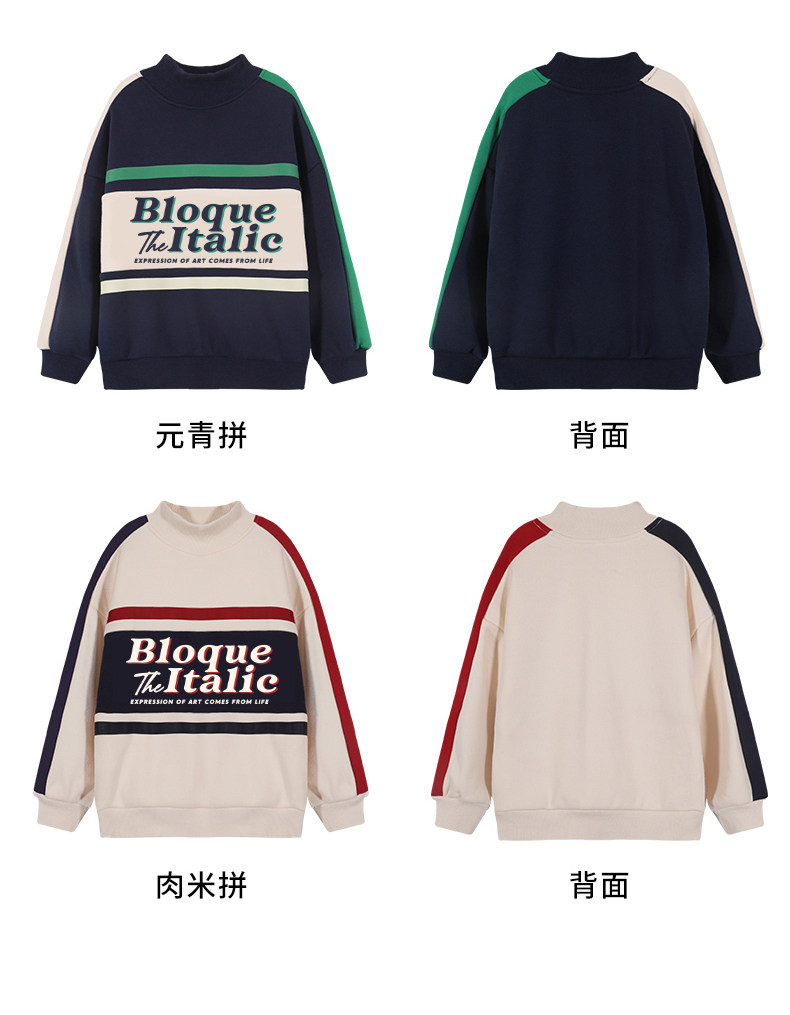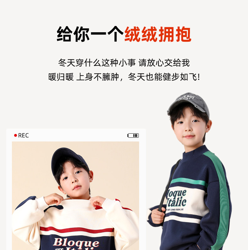 贝田2024新款冬季男童加绒卫衣半高领一体绒儿童加厚酷帅炸街上衣