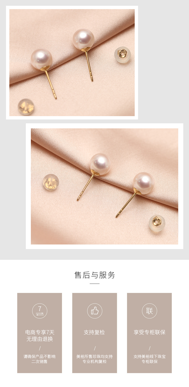 金18K海水珍珠耳钉 7-7.5mm白一根针 105899