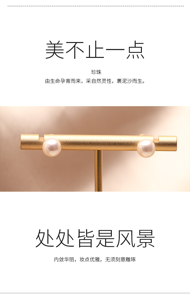 美裕 【四方格】银925淡水珍珠耳钉6-7mm白104193
