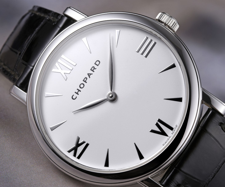 镜面材质 | 蓝宝石水晶玻璃 | 表盘 | 18K白金表壳 白色表盘,18K白金指针;罗马数字时标 密底 |