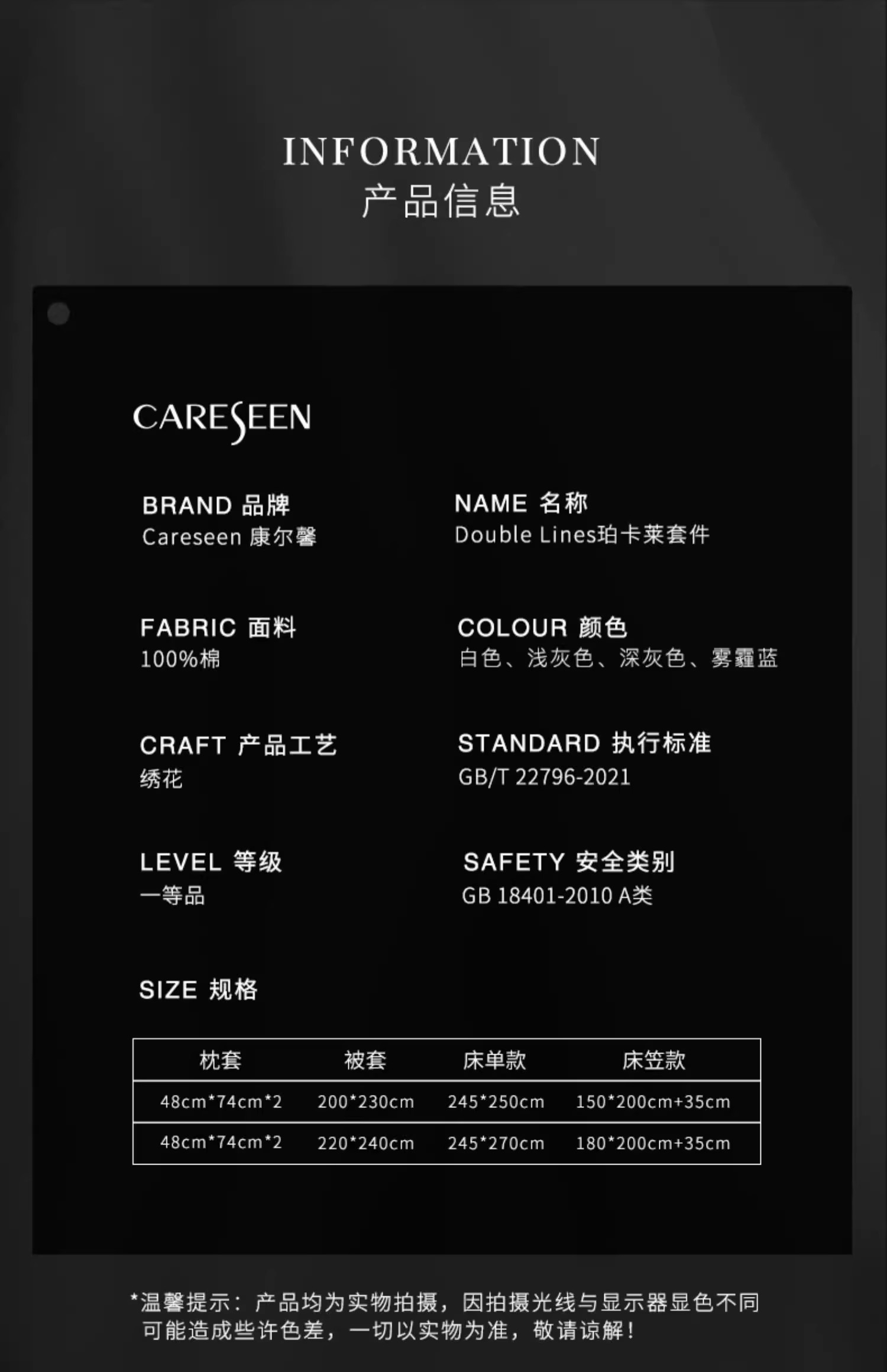 - 源自五星级酒店的奢华家纺品牌,康乃馨首次提出打造“酒店+家纺”的全新概念,将更为严格的五星级酒店纺织品品质标准与家纺相结合,完美诠释“酒店品质家纺”的舒适感受与奢华品味。