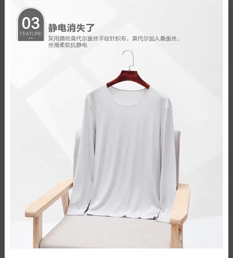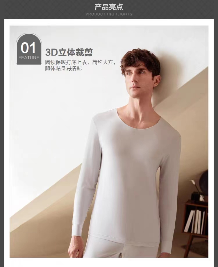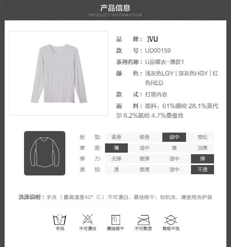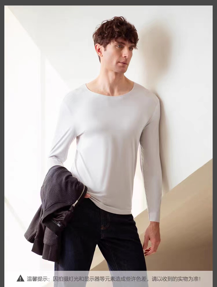 旗下IVU男士圆领长袖桑蚕丝打底舒适薄款秋衣