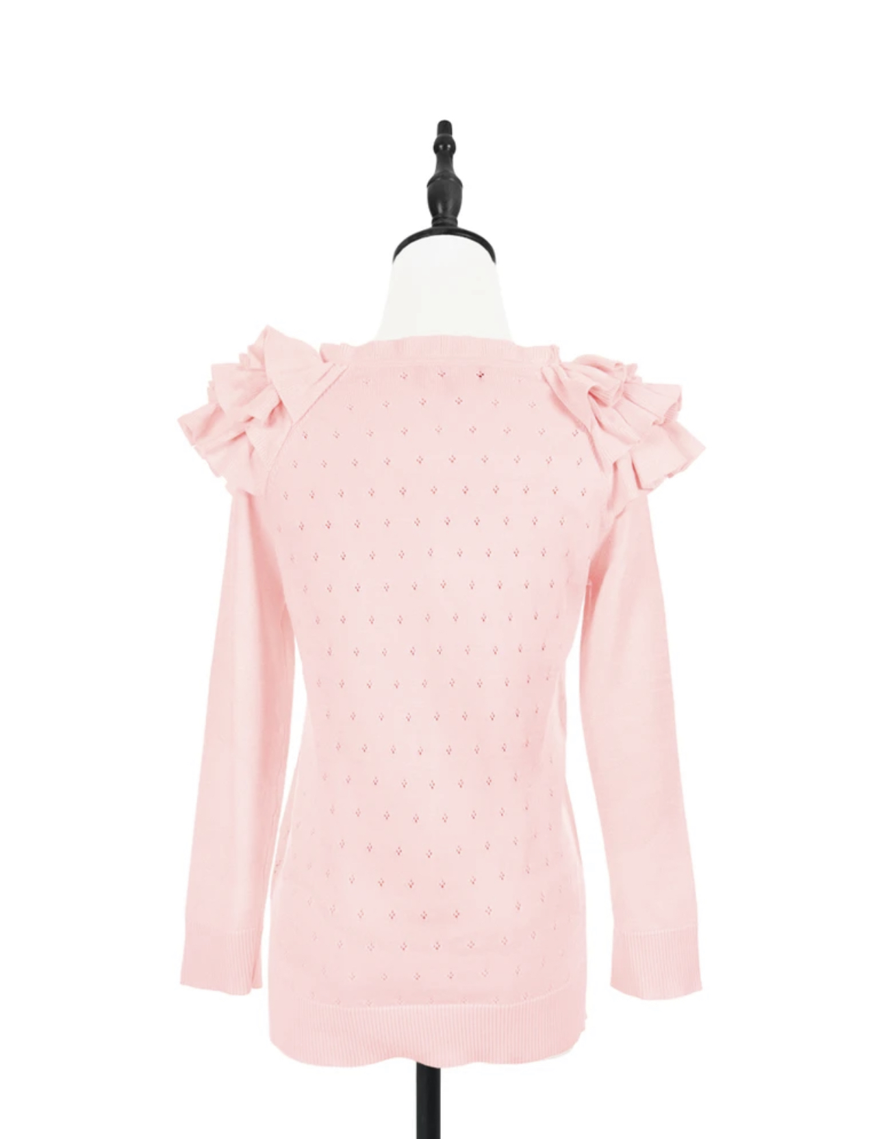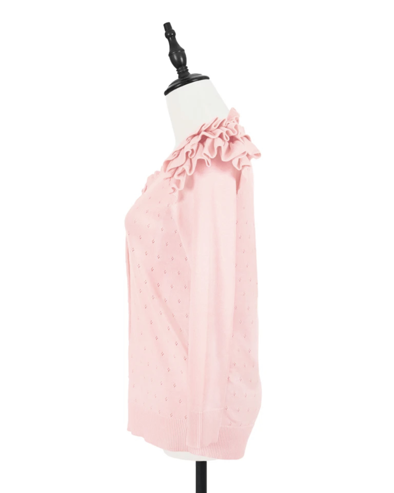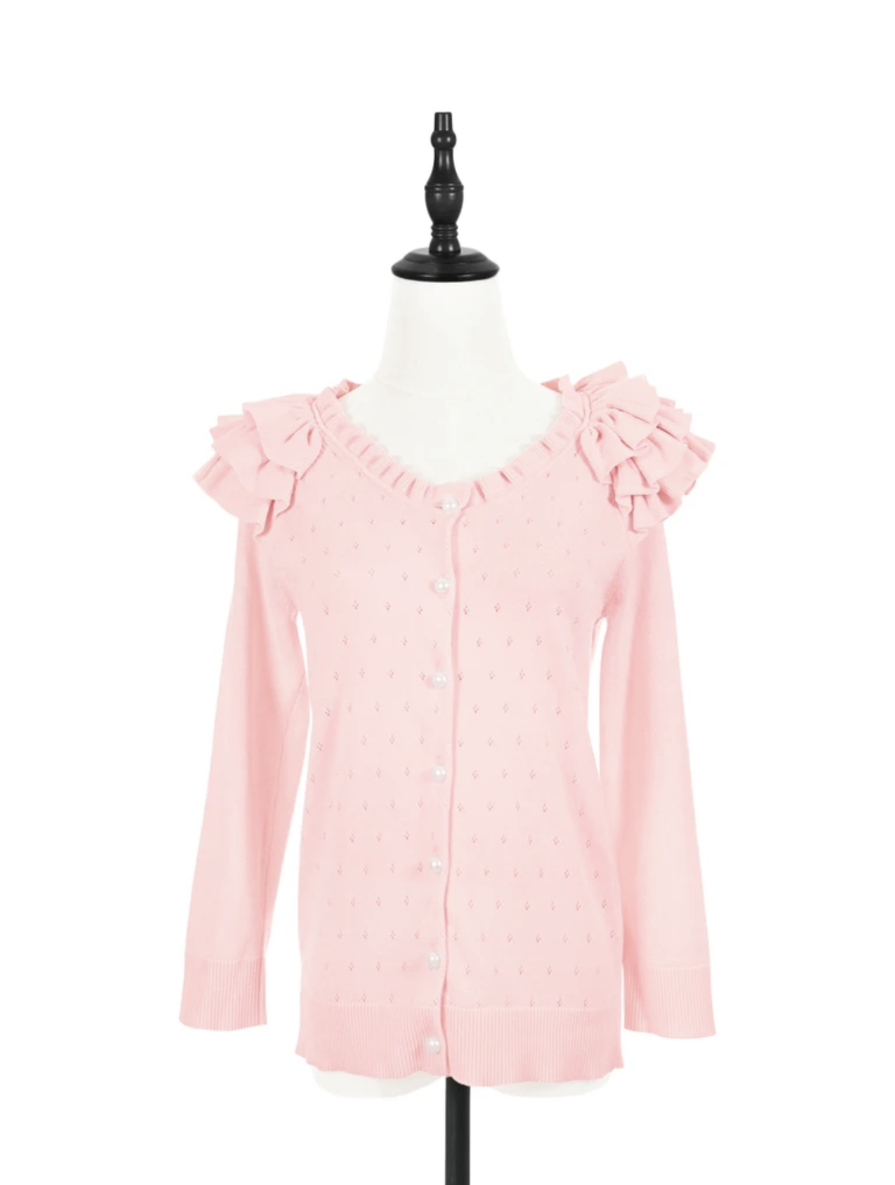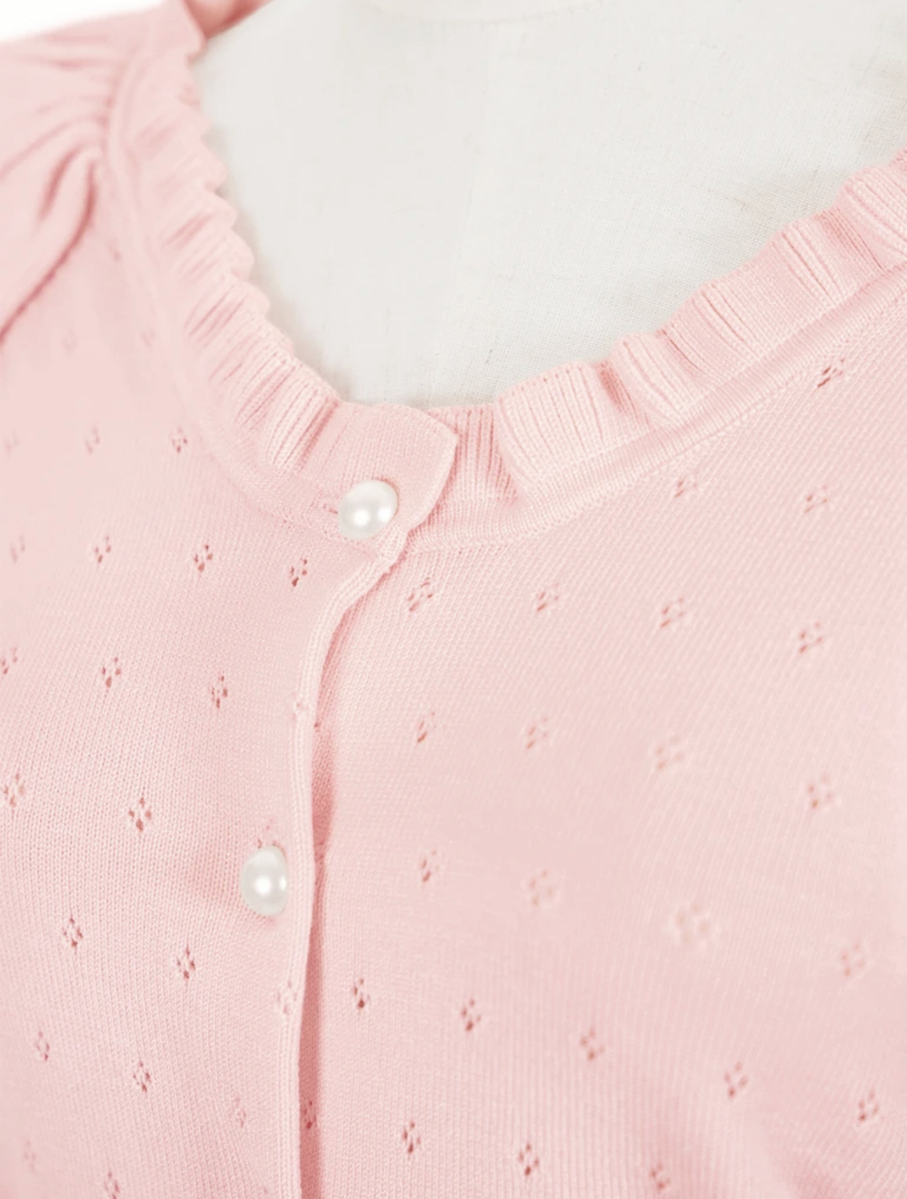 TYNVIE 花边肩饰圆领针织开衫-粉色