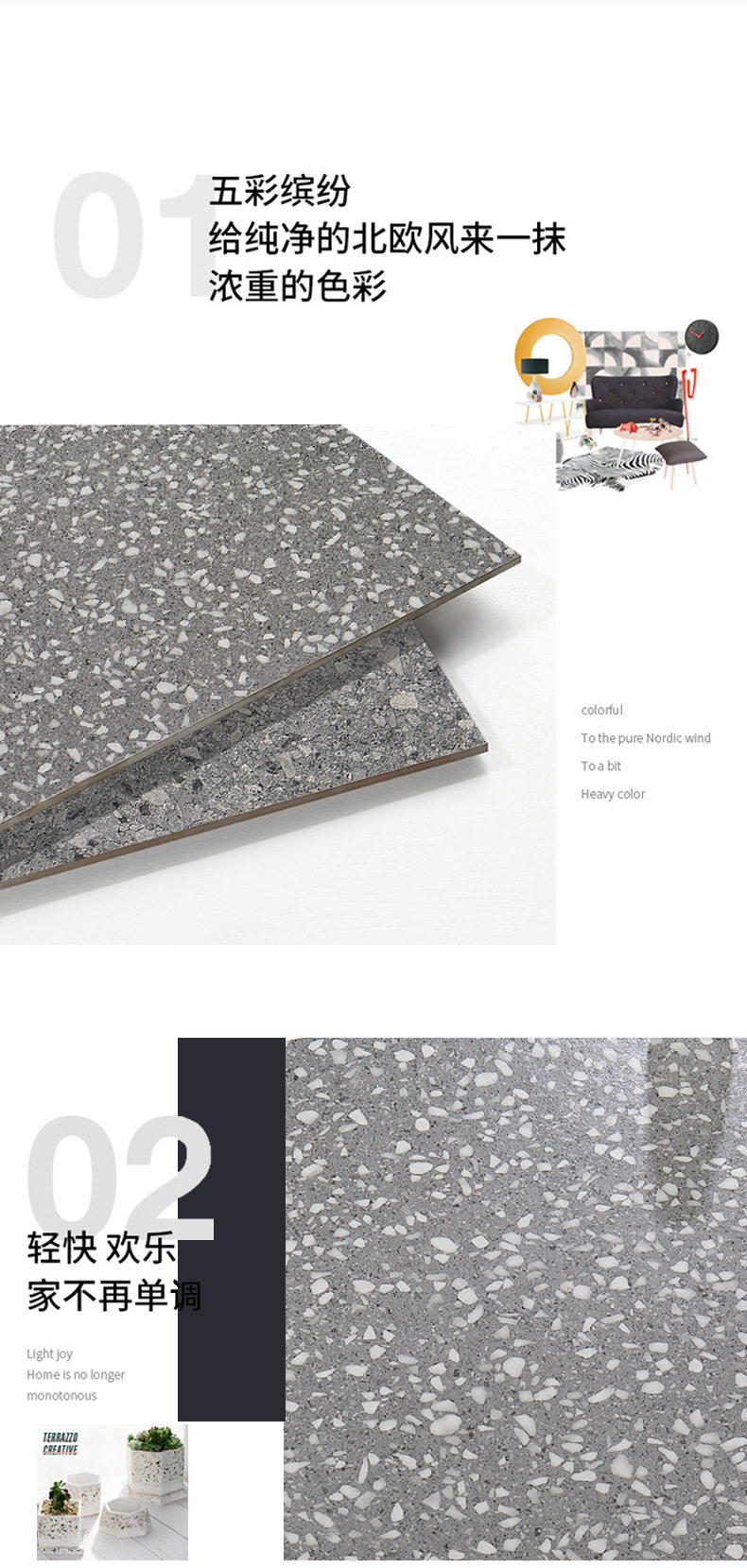 地砖餐厅瓷砖哑光彩色防滑600x600马卡龙仿古客厅墙砖水磨石餐厅 商品图2