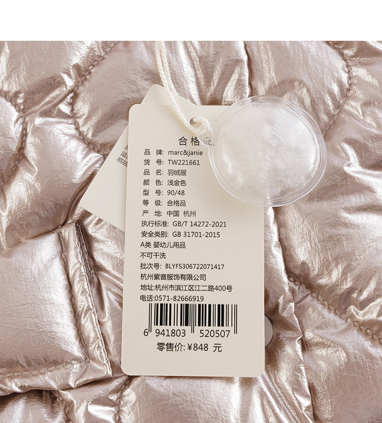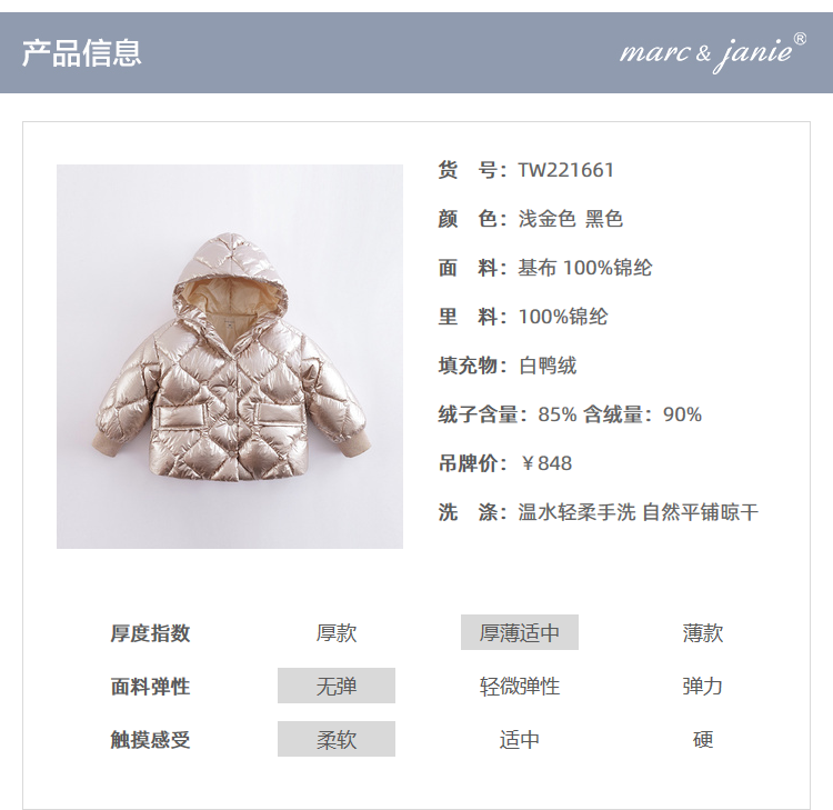 马克珍妮冬装新款 女童时尚金属色加厚保暖羽绒服221661