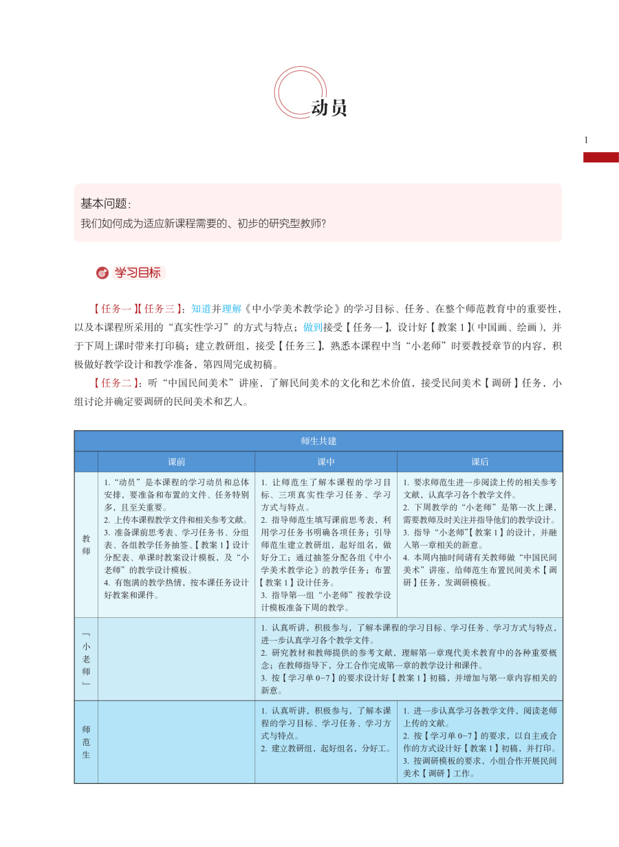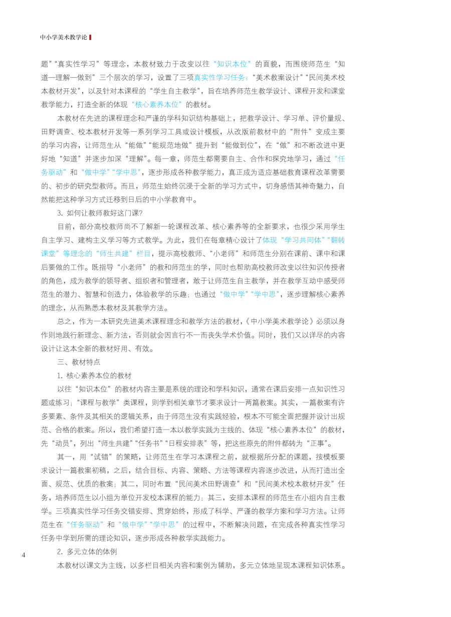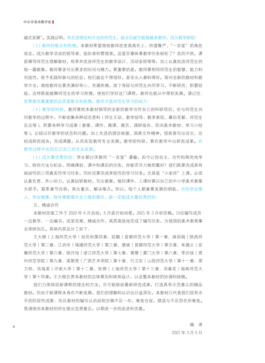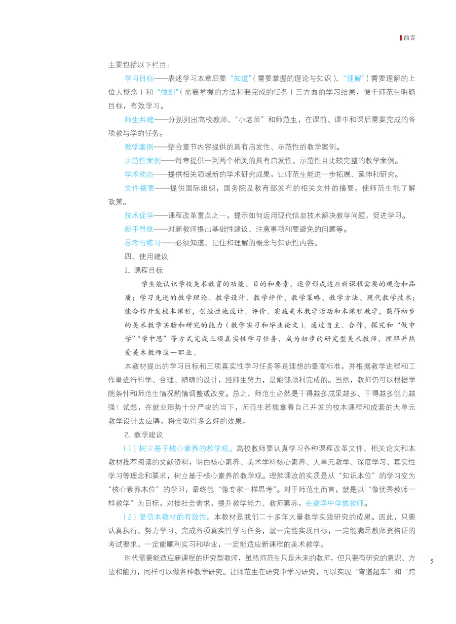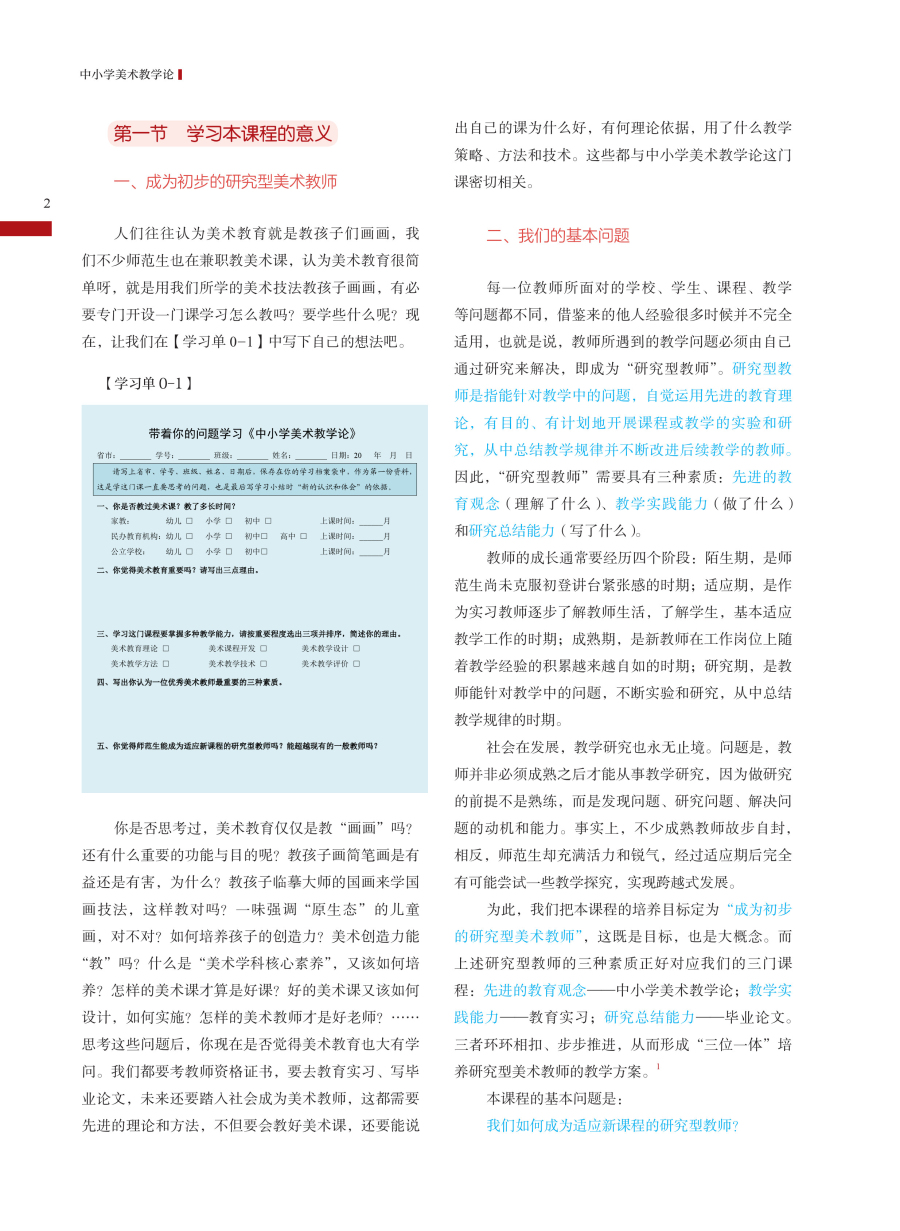 本书共包含十四个章节,基本涵盖了师范生从认识中小学美术教学内容、教学形式和分类教学的方法,通过一系列的学习单和任务实训将十四章的内容串联起来,指导师范生在实际的教学中由教师负责引导,师范生轮流担任教学实训的“小老师”,进行主动的知识建构,不仅从观念上指导师范生创造合作型学习团队,更是从实践上进行训练,将教材中分享的先进教学理念与实际的教学过程完美融合,具有很强的指导作用。