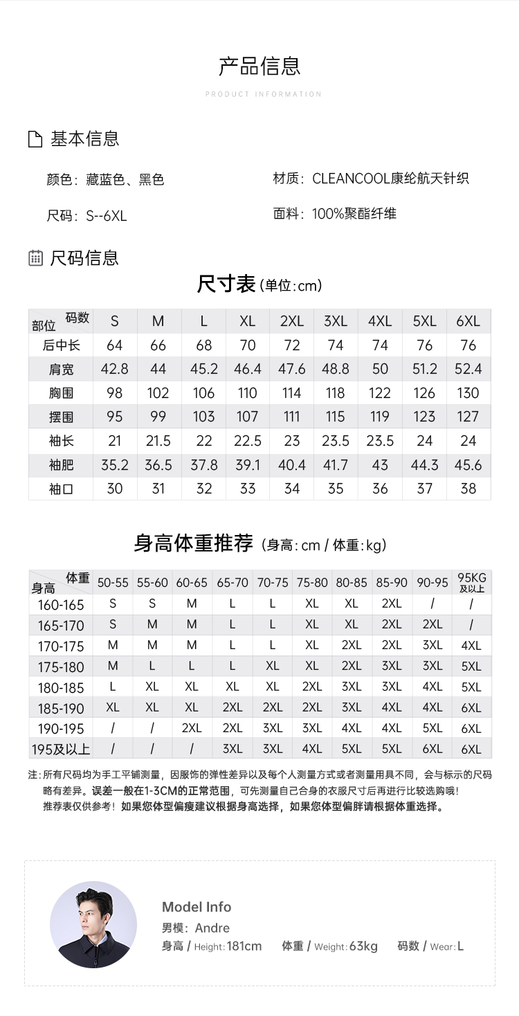 【康纶航天银离子POLO衫】夏季通勤翻领短袖 清爽透气T恤上衣