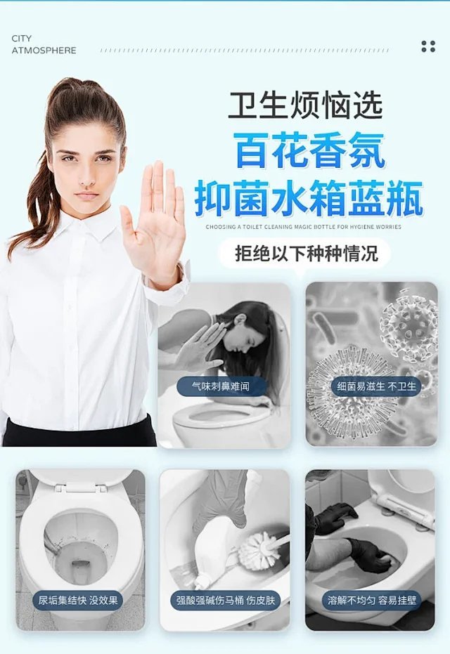 别怕!城市气息百花香氛抑菌水箱蓝瓶来拯救你,解决所有清洁难题,让卫生间焕然一新!