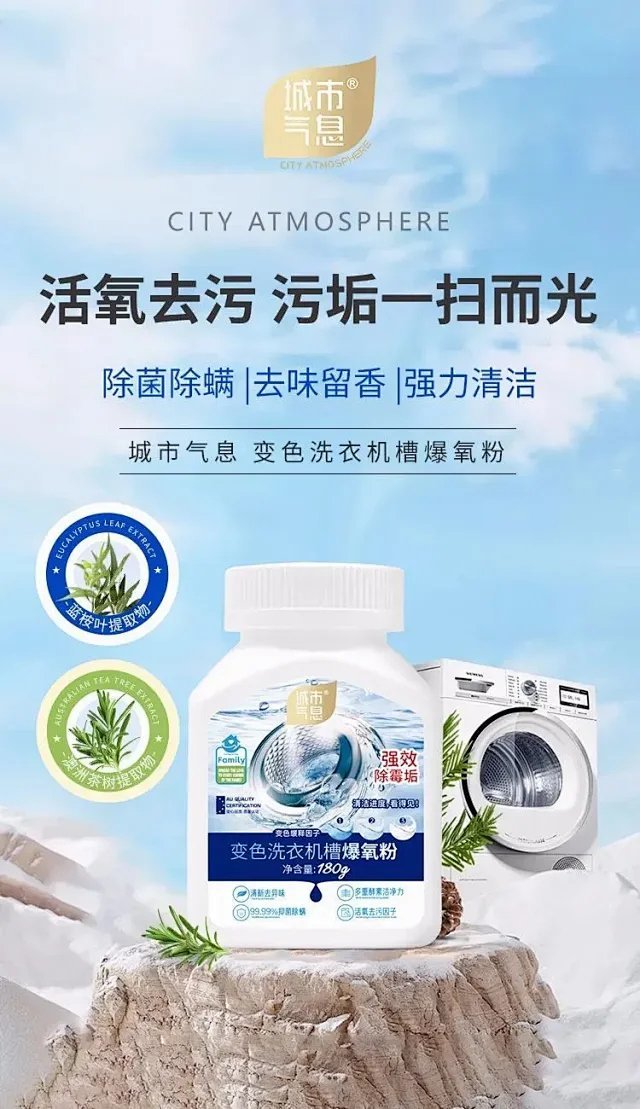 洗衣机里除了污垢和细菌,最难清洗的其实是霉斑,尤其是潮湿的南方城市,霉斑简直是噩梦,想要彻底清除非常困难!城市气息独家添加“高效除霉因子”,3倍除霉力~!