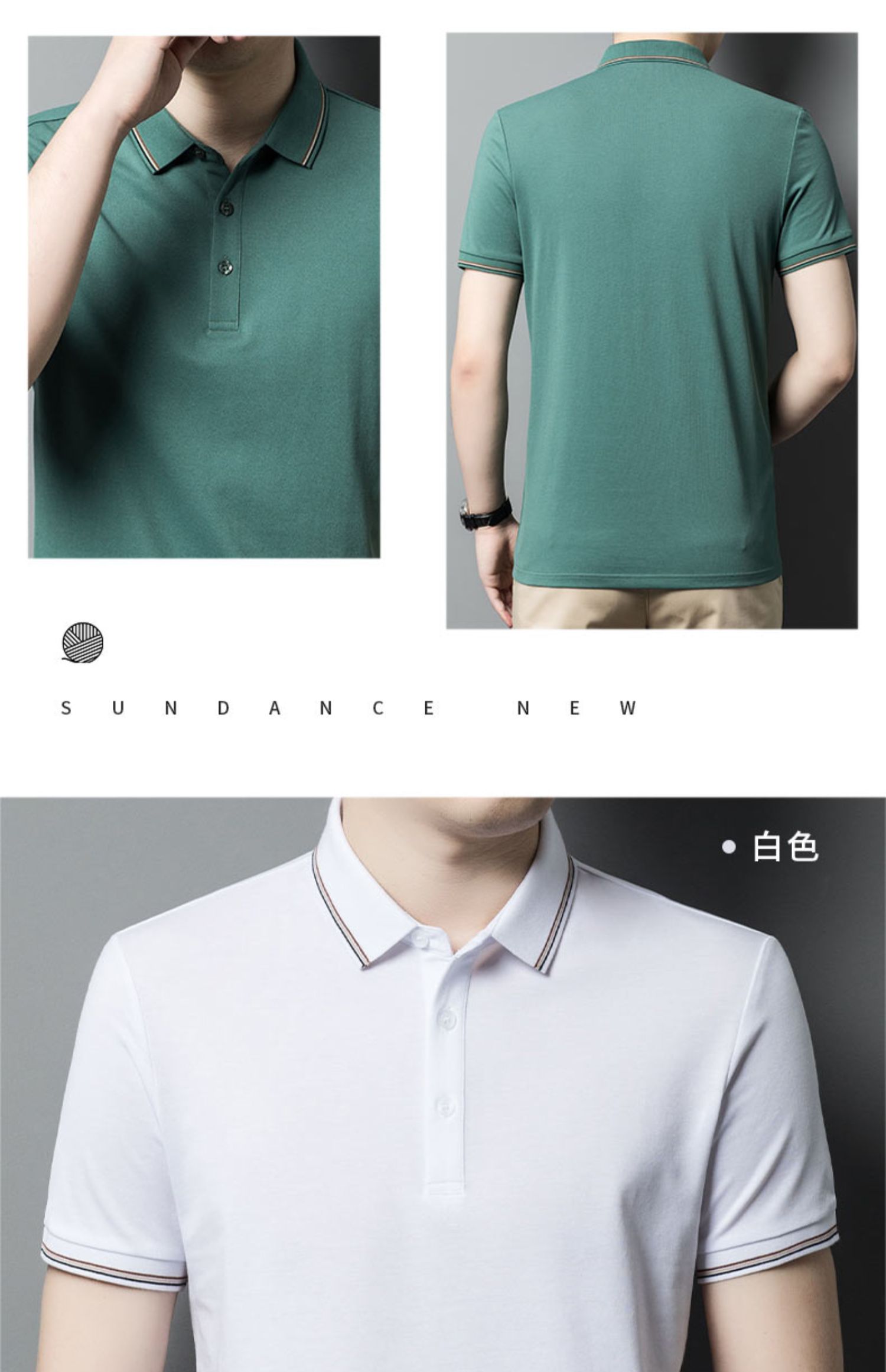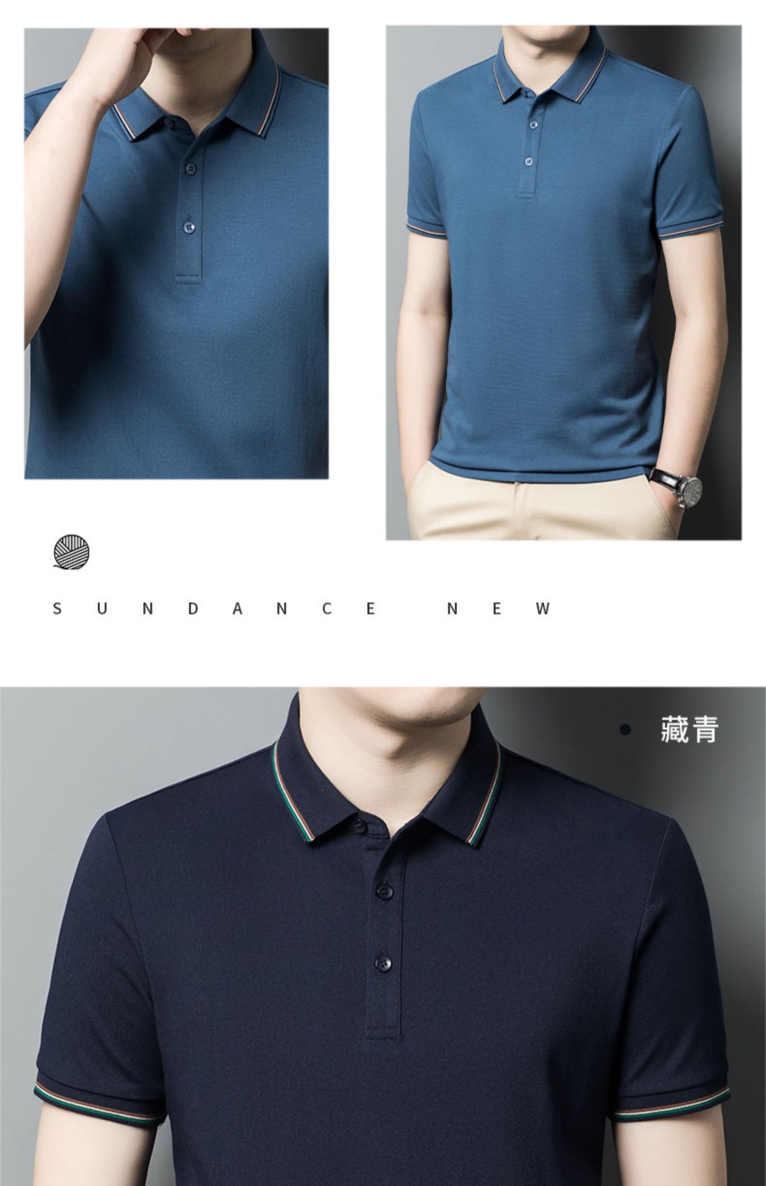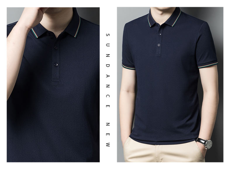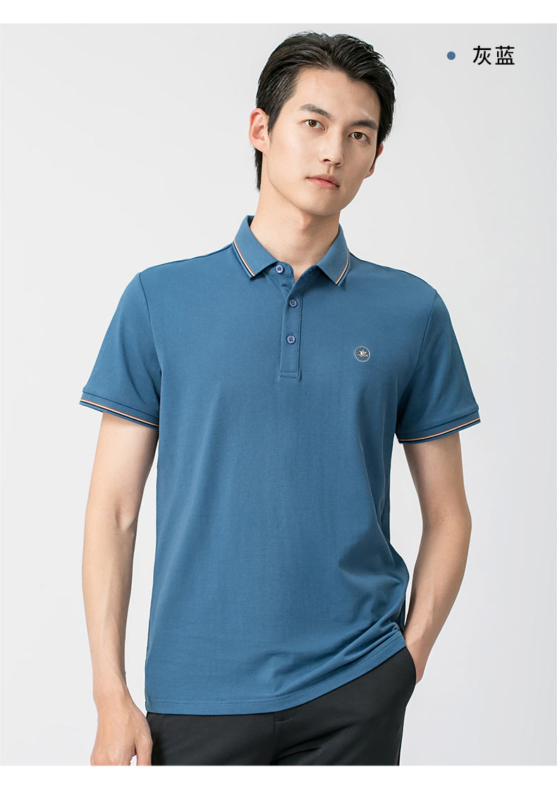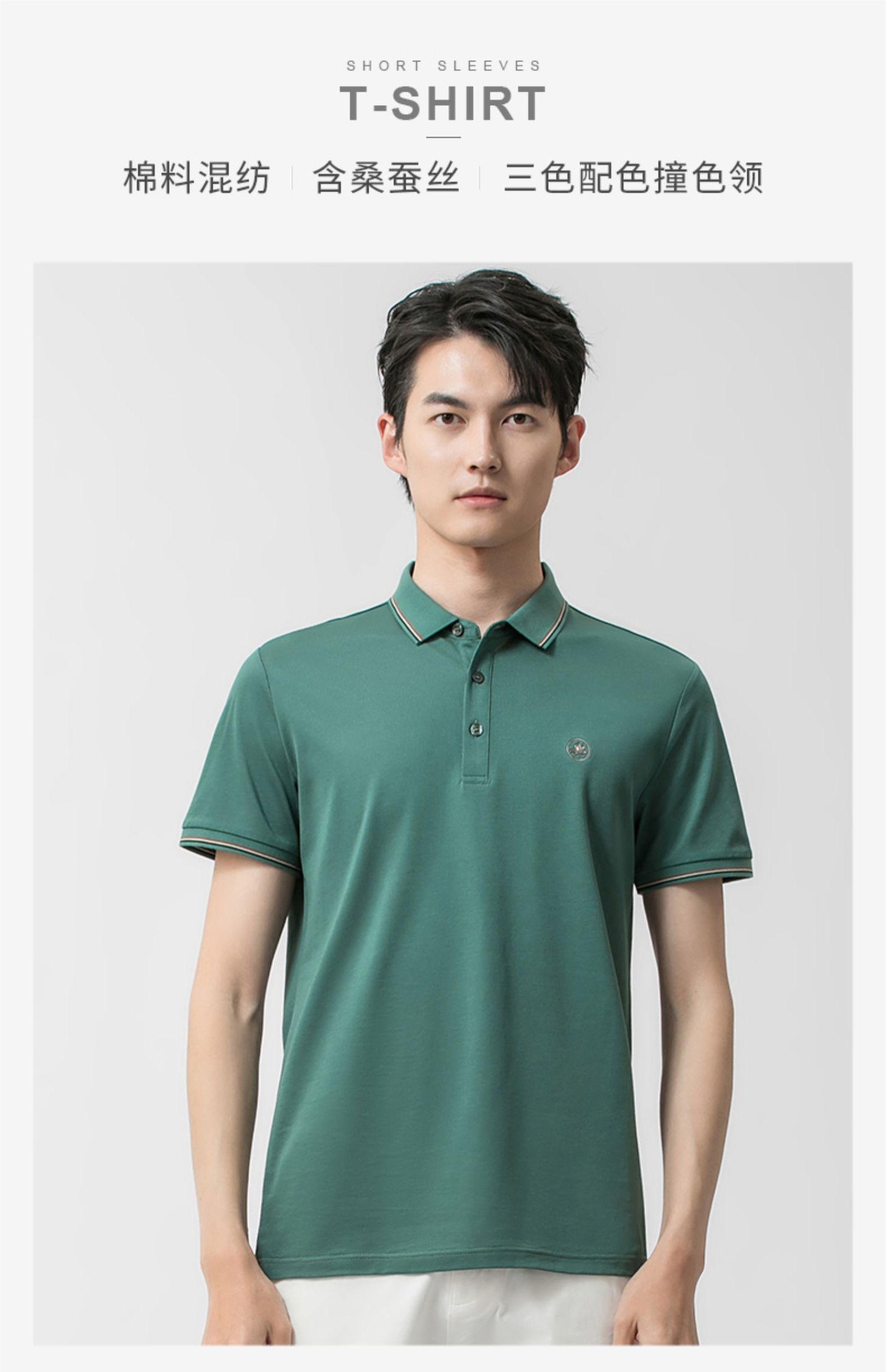 圣得西男士含桑蚕丝撞色翻领短袖polo衫夏季新款商务短袖T恤2312946010