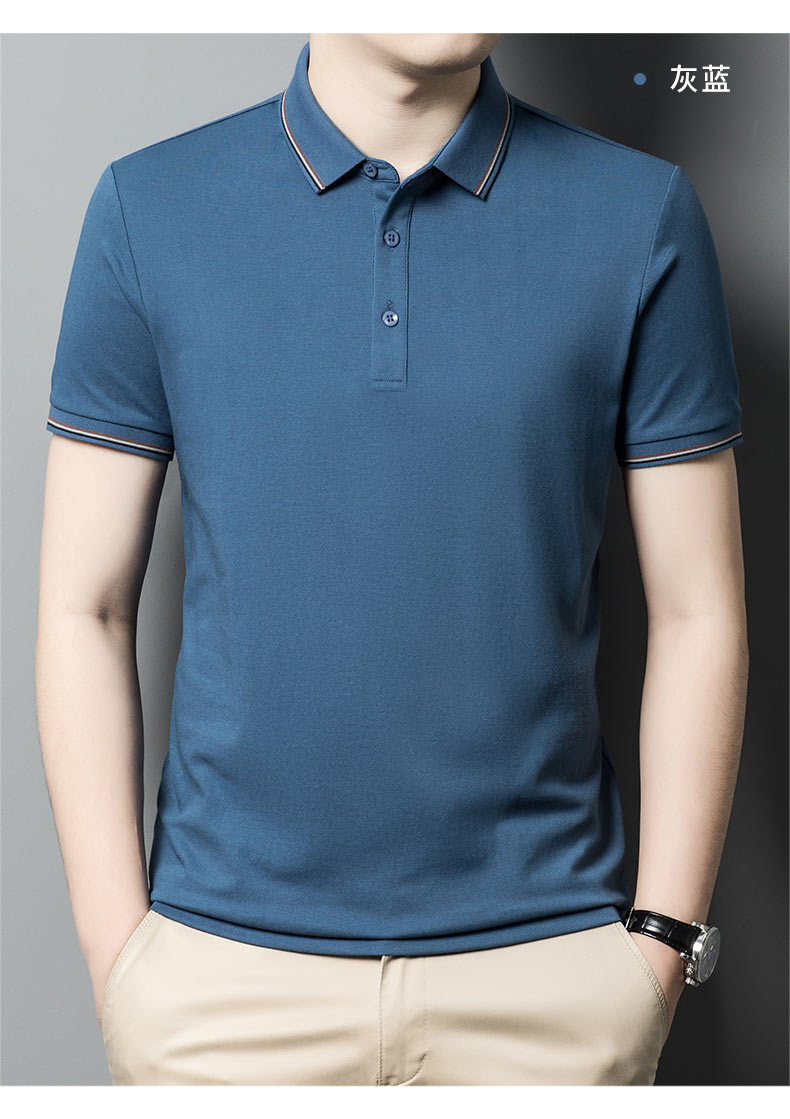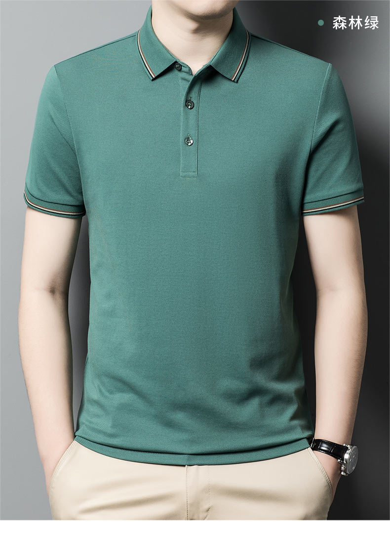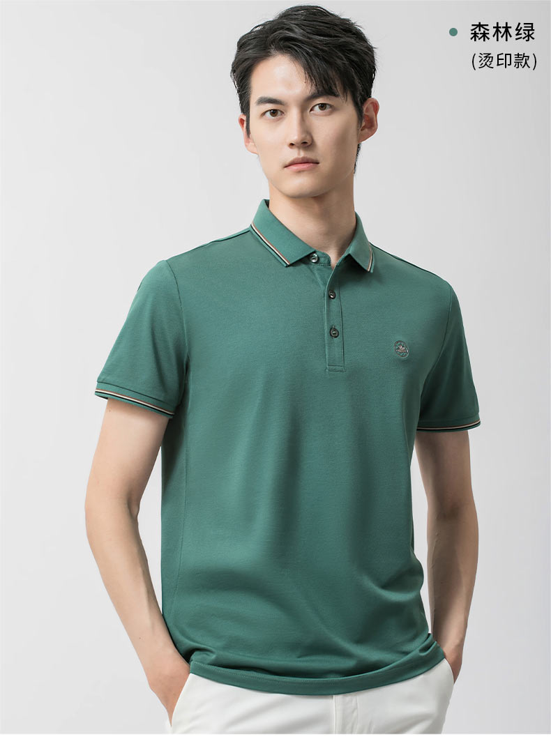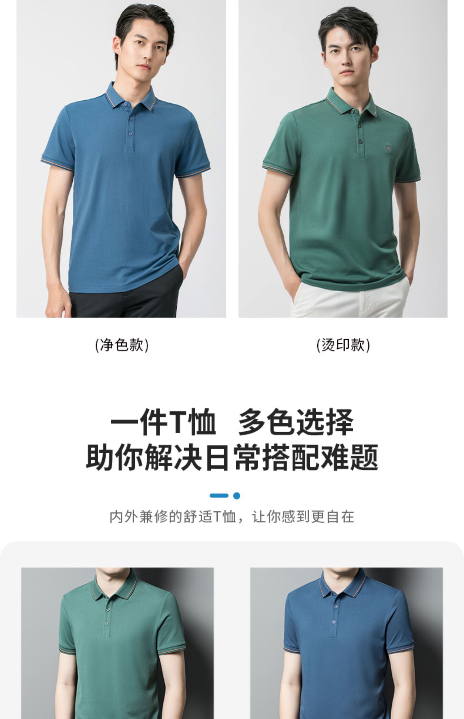 圣得西男士含桑蚕丝撞色翻领短袖polo衫夏季新款商务短袖T恤2312946010