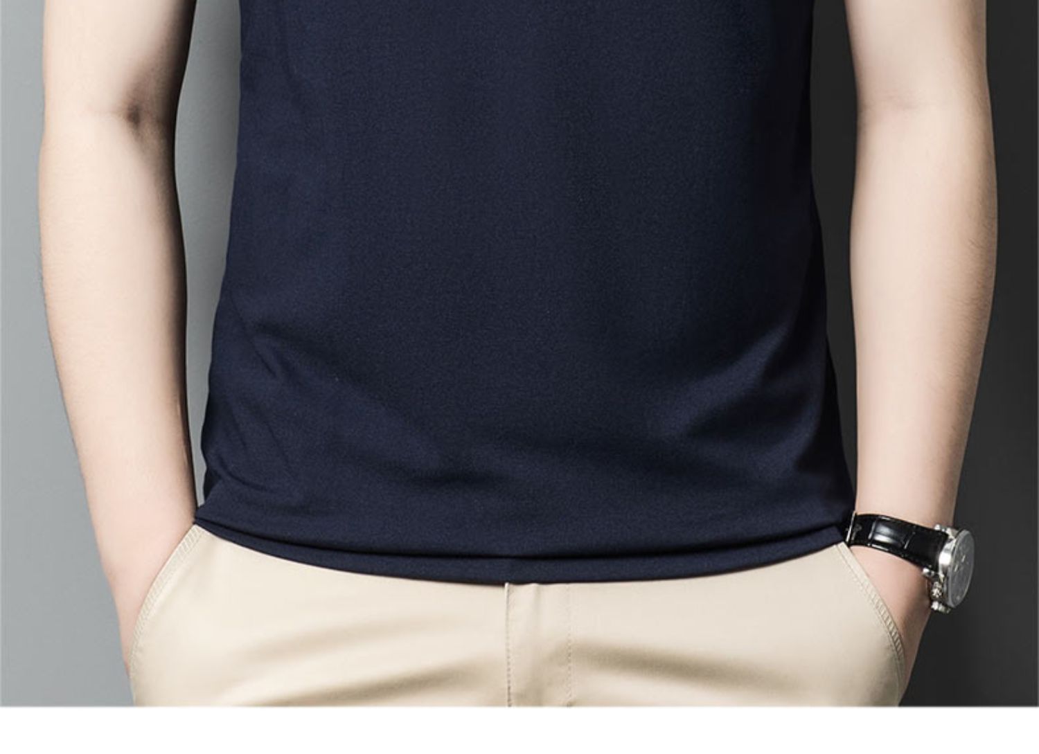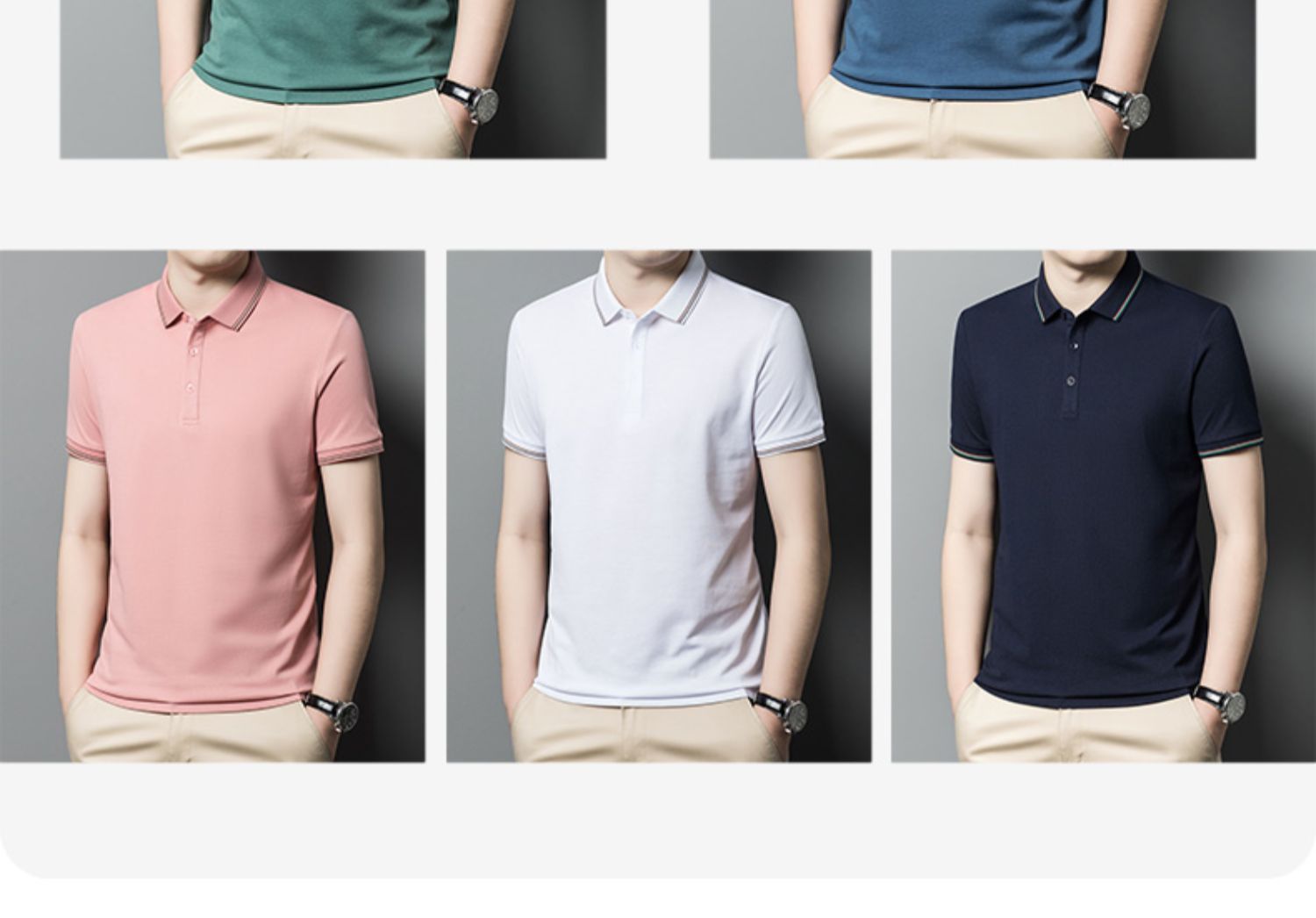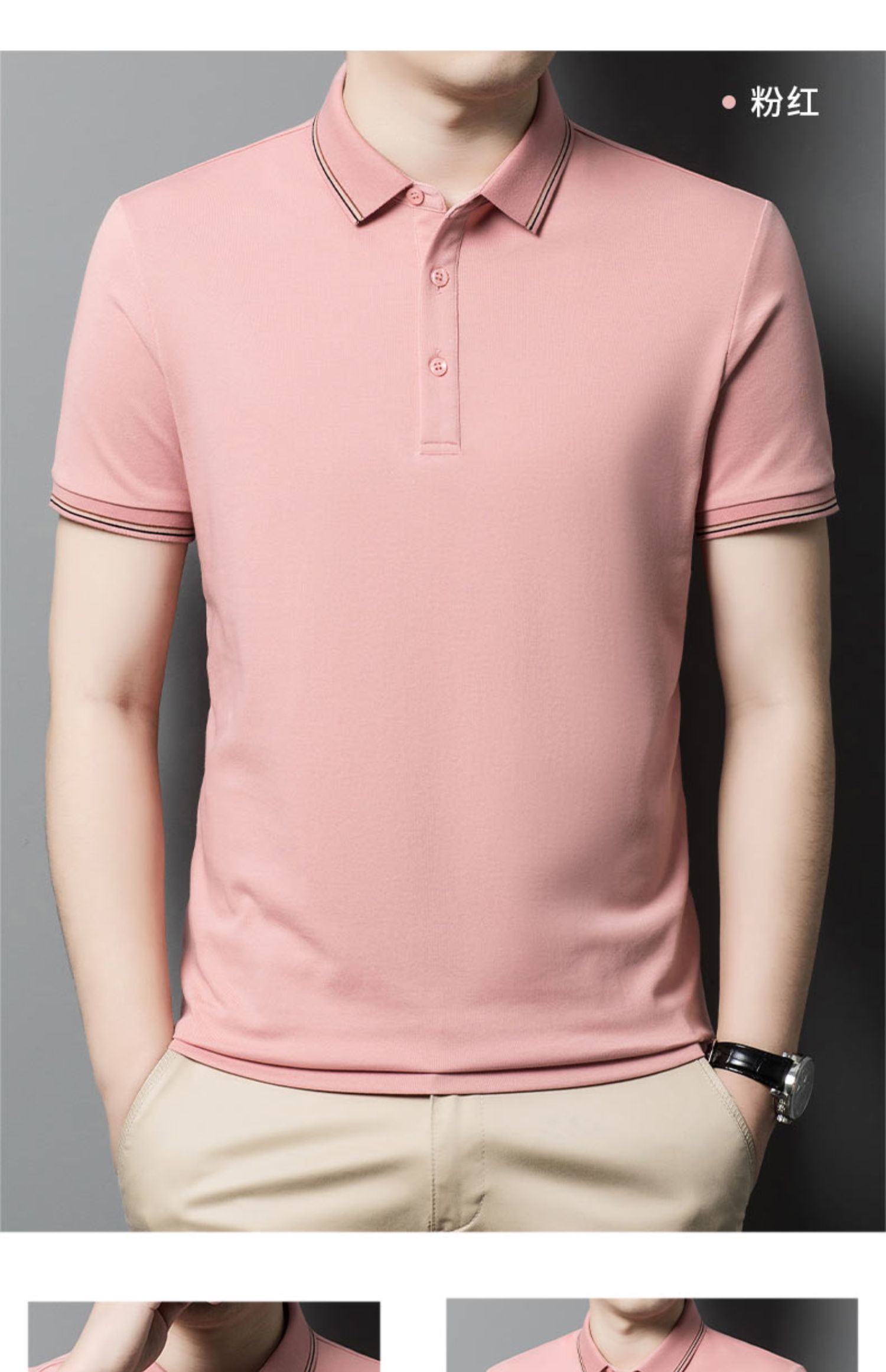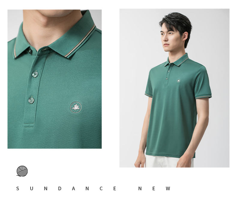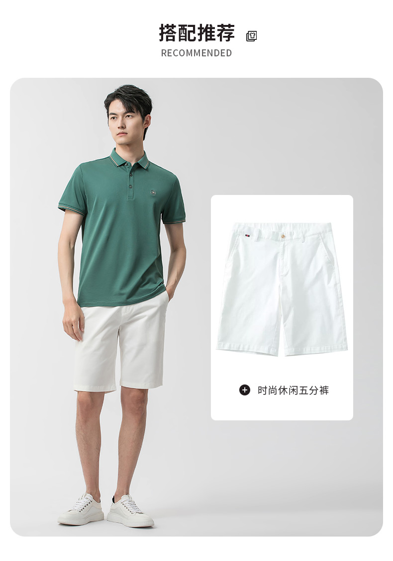 圣得西男士含桑蚕丝撞色翻领短袖polo衫夏季新款商务短袖T恤2312946010