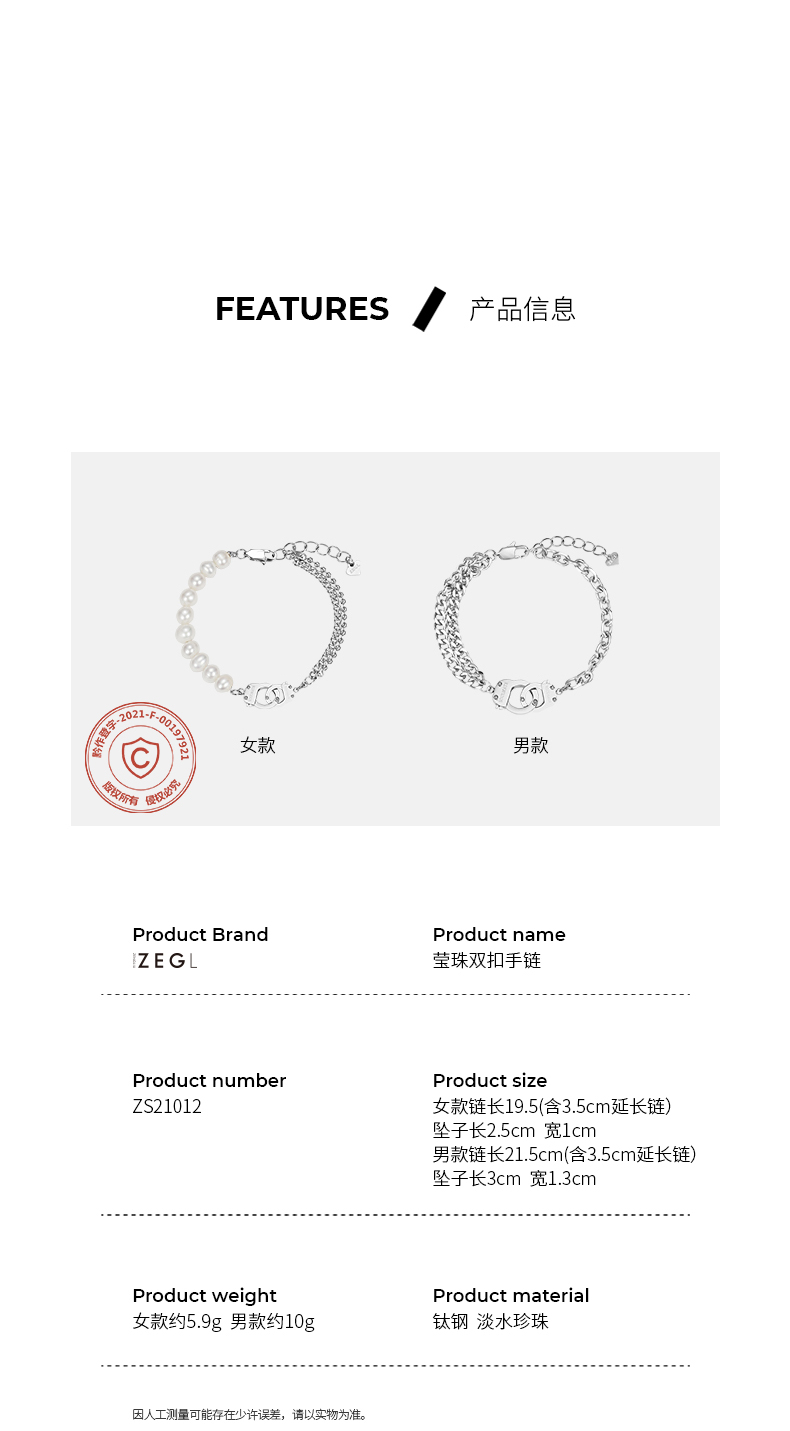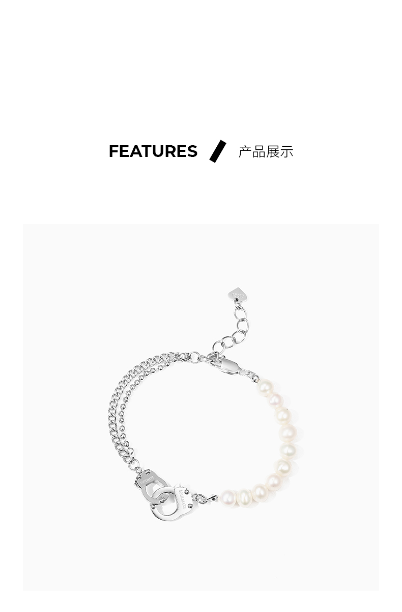 ZEGL设计师淡水珍珠手铐情侣手链一对男女小众设计手饰品七夕礼物