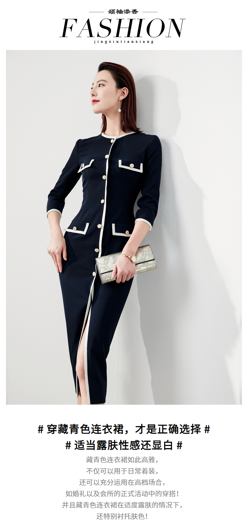 “斯嘉丽琴音”J20183857 颈袖添香季新款时尚OL修身包臀气质职场装连衣裙J3857T1X5