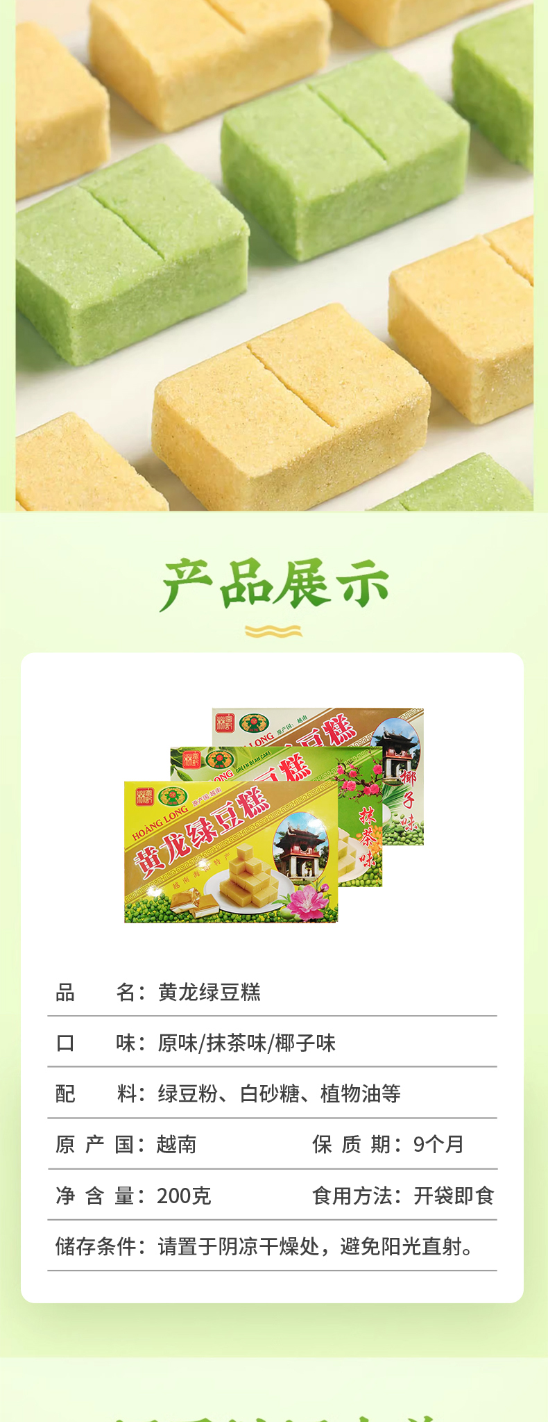 越南进口黄龙绿豆糕200g(原味丨抹茶味丨椰子味)
