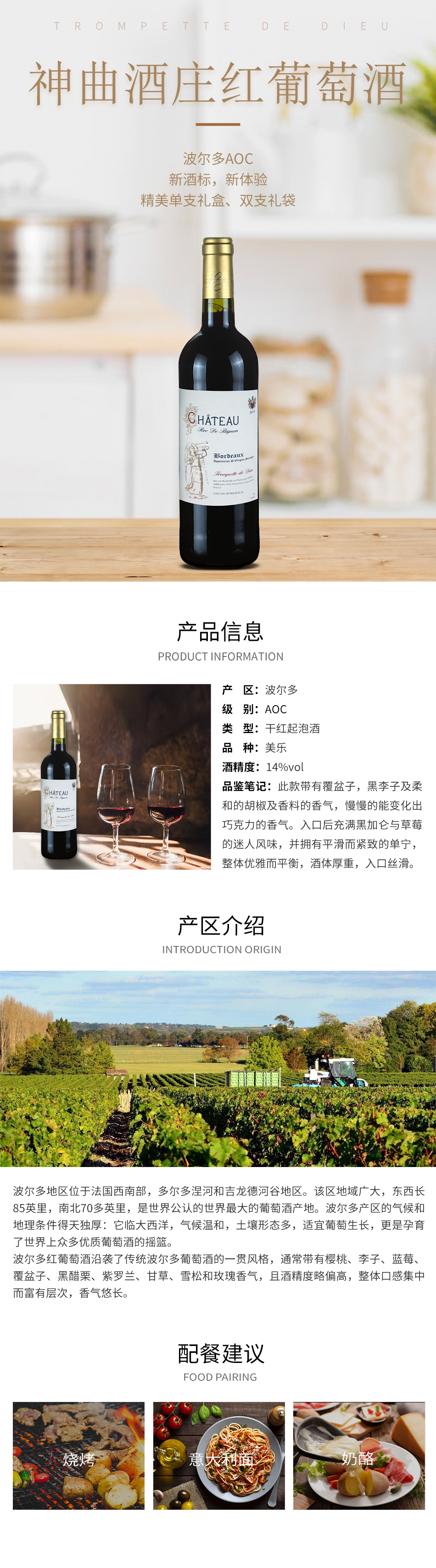 法国神曲酒庄红葡萄酒750ml*1瓶/2瓶(2个杯子+醒酒器)/6瓶(6个杯子+醒酒器)