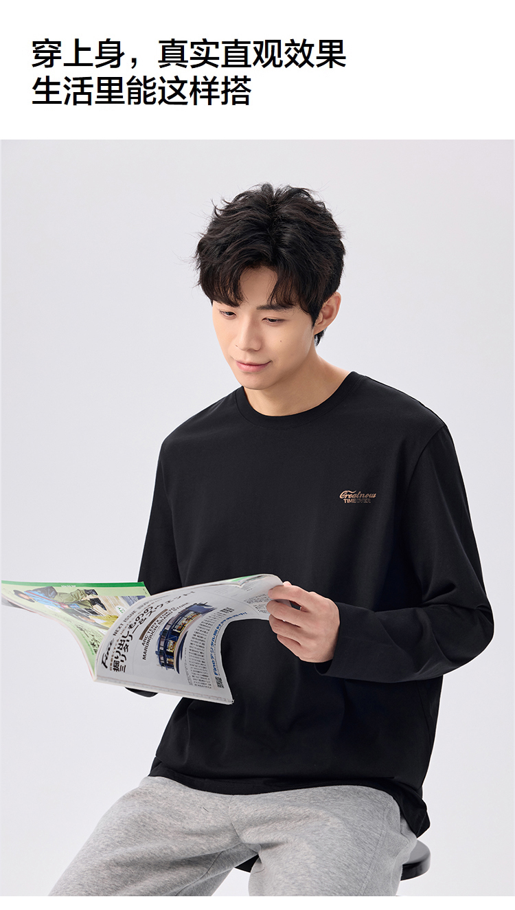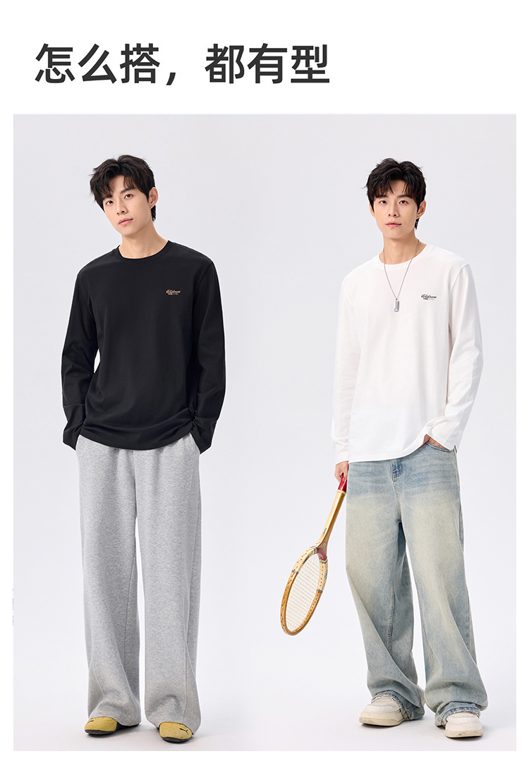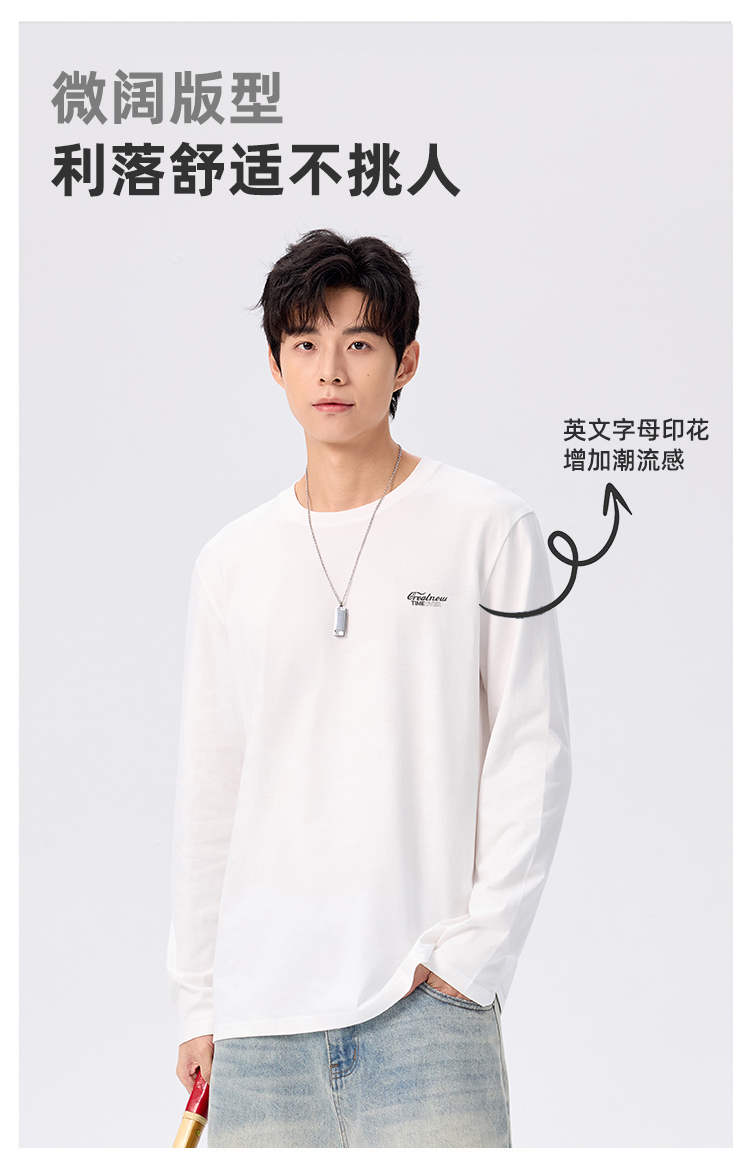 【棉100%】男士长袖T恤25秋款简约百搭情侣款打底衫上衣K&C