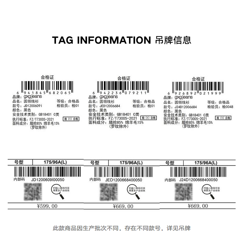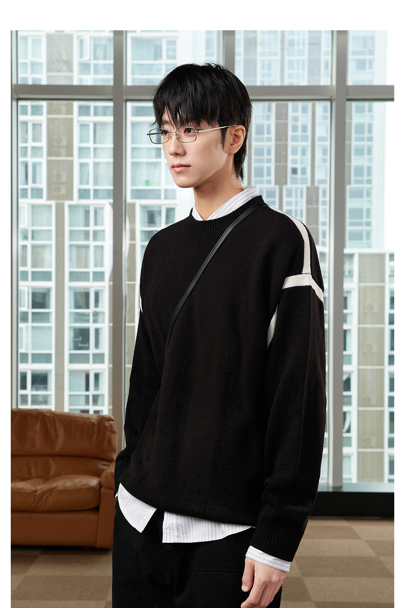 gxgjeans男装冬季青年男撞色休闲圆领毛衫潮