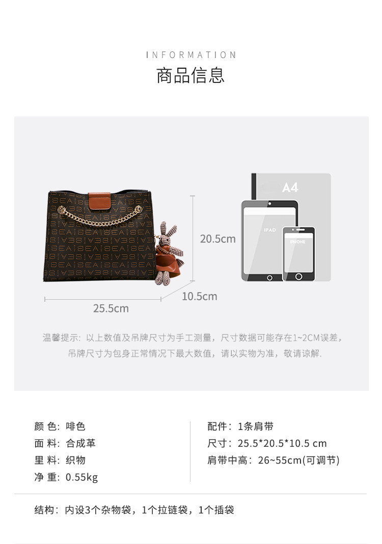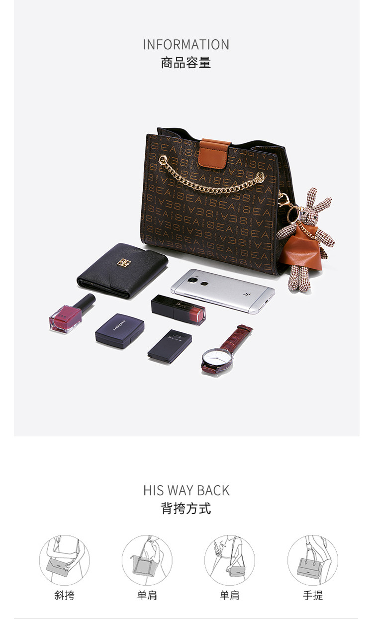 Safiya/索菲娅2023新款大容量托特包时尚单肩包女式斜挎包女包SF9140072Y