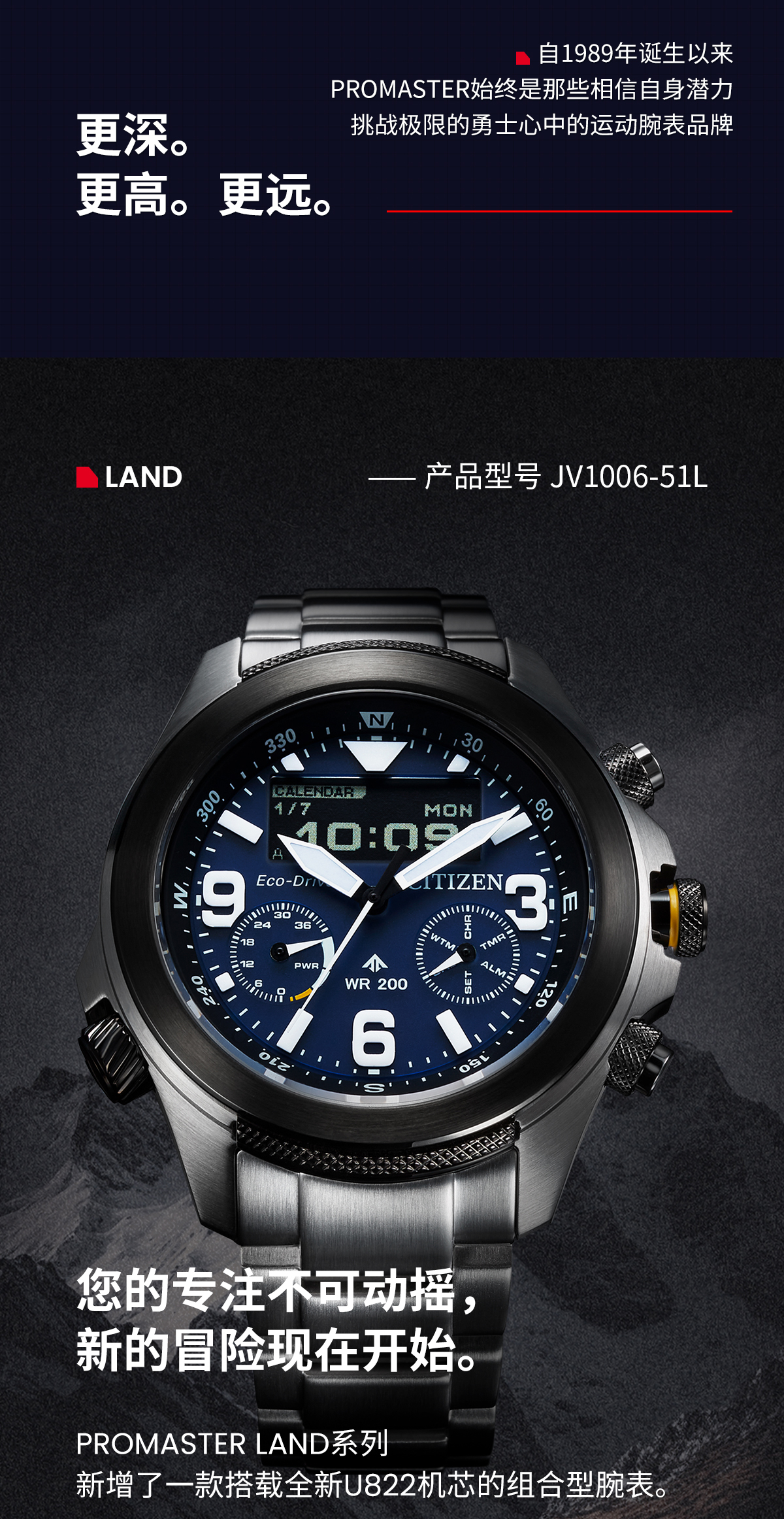 西铁城/CITIZEN运动光动能钢带男表JV1006-51L