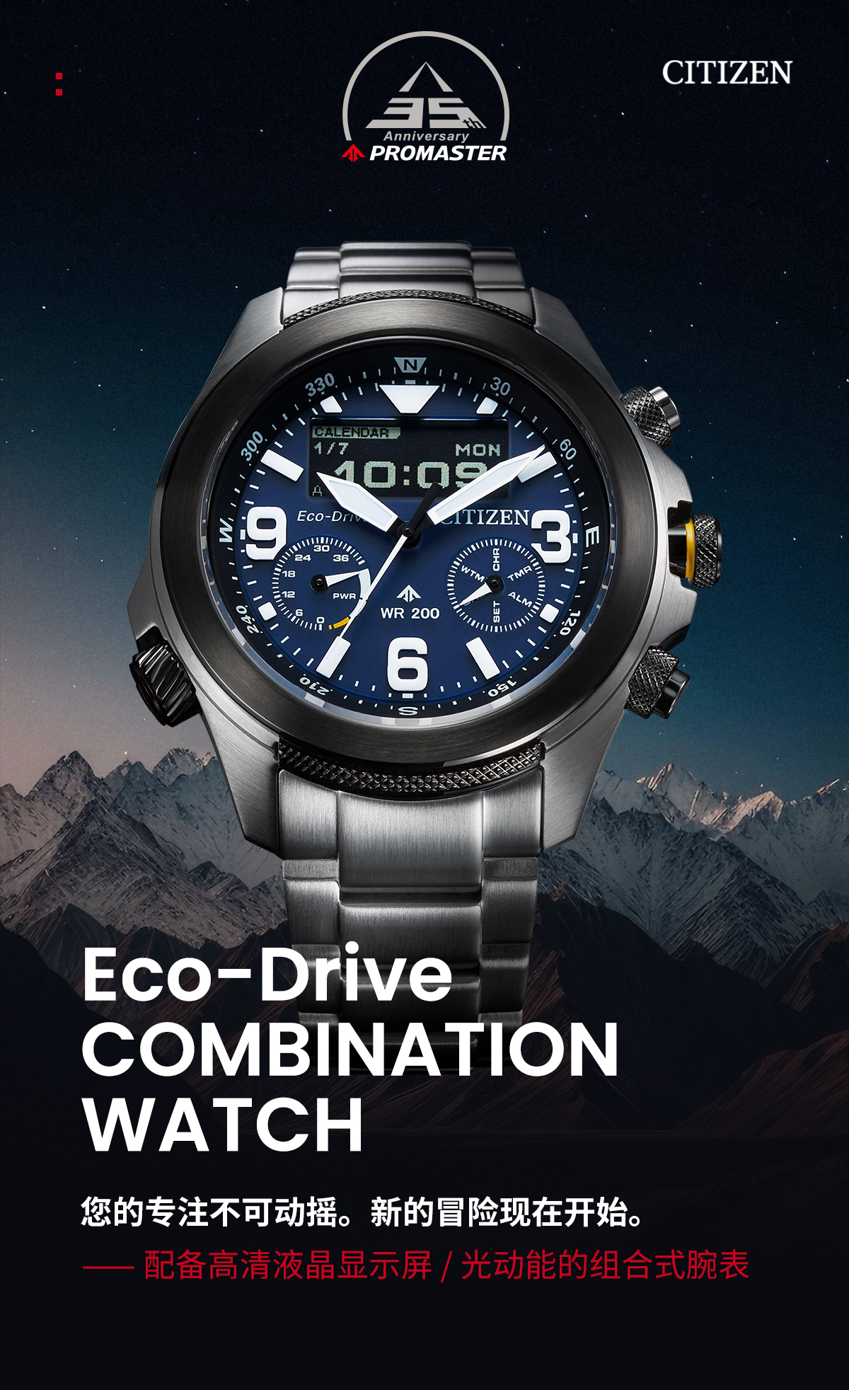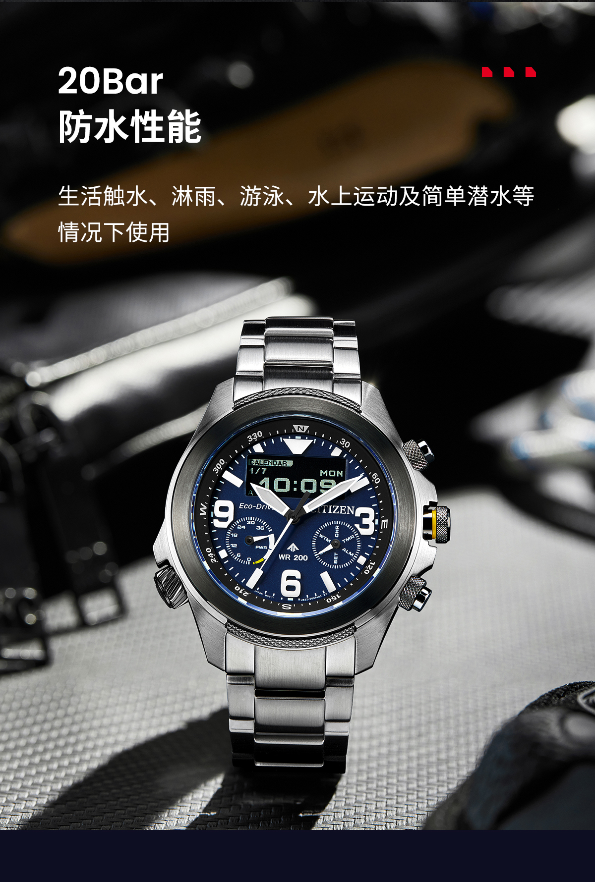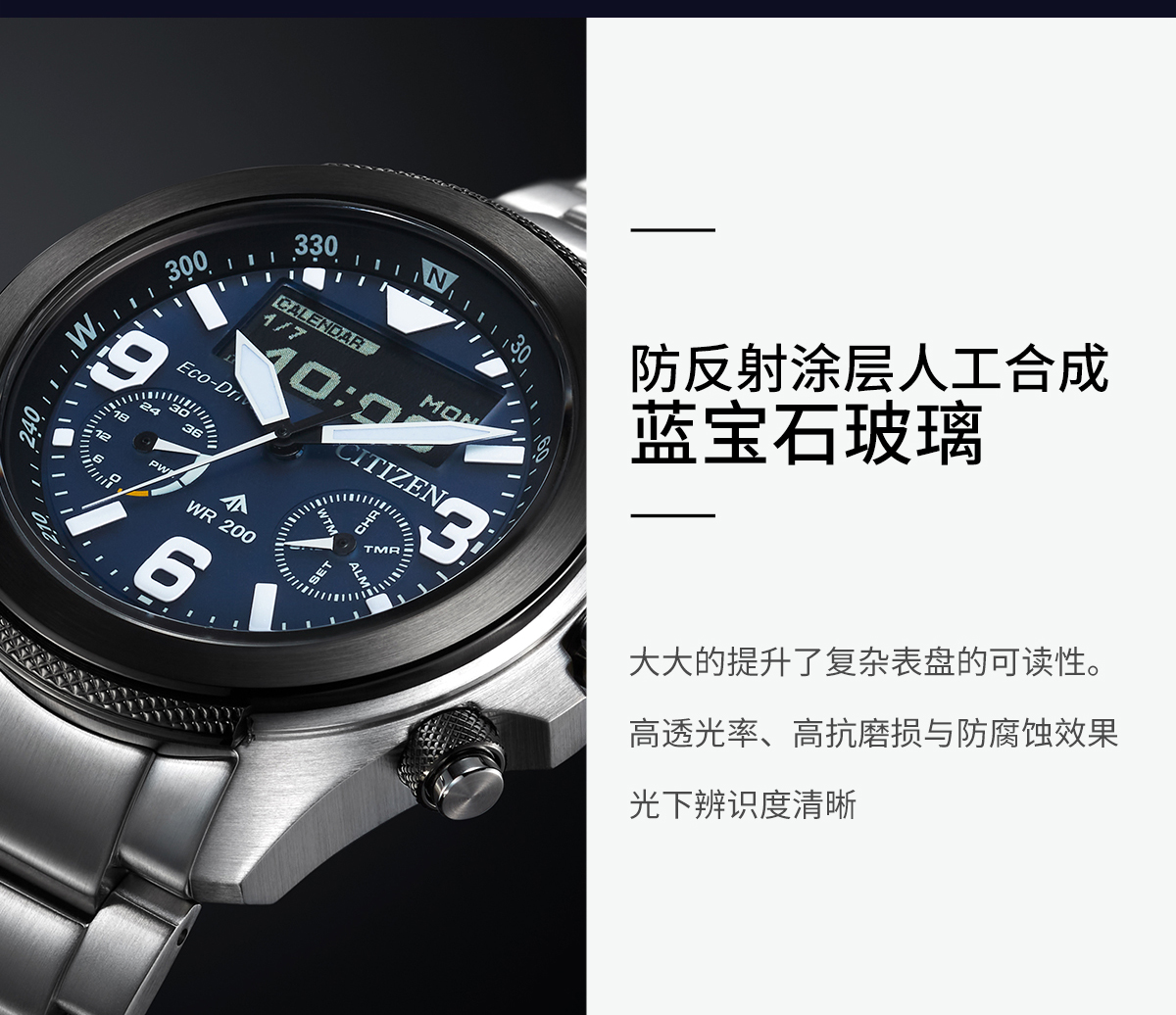 西铁城(CITIZEN)光动能多局电波男表蓝天使三代CB5848-57L