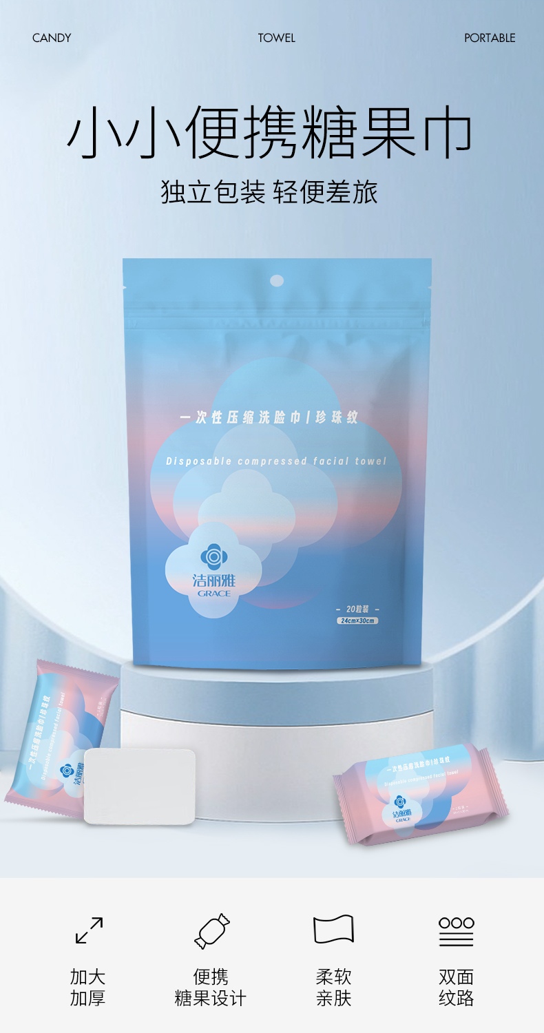 洁丽雅压缩洗脸巾20粒一次性毛巾洗脸巾糖果洁面巾旅行出行可携式#专享券