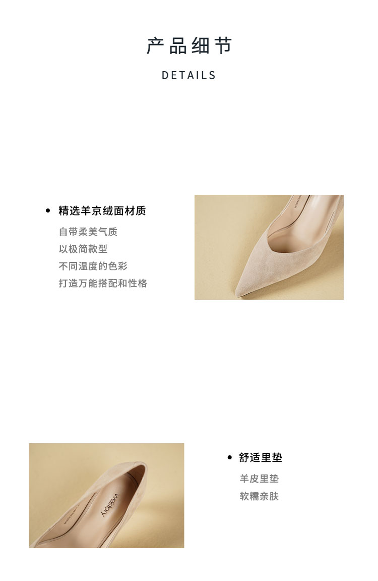 Westory2026年春季尖头彩色高跟V口羊京极简浅口单鞋宴会鞋通勤鞋W26AE50081