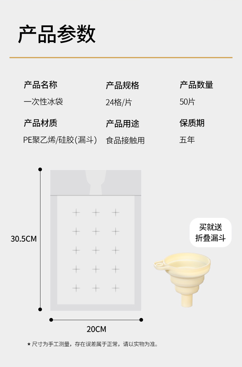 【批发】美丽雅一次性自动封口冰袋加厚24格送漏斗 50片/包