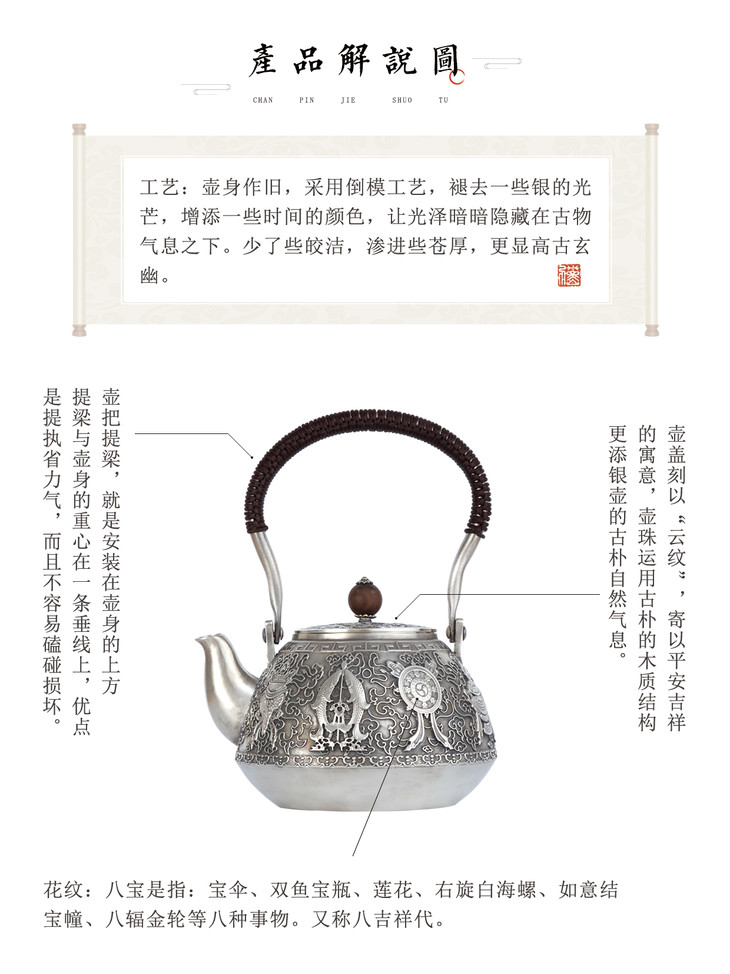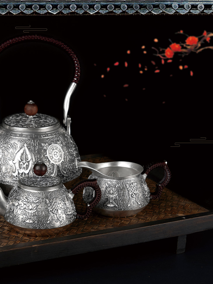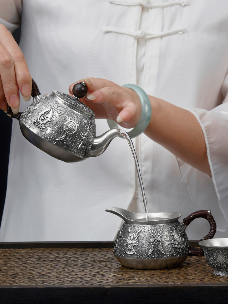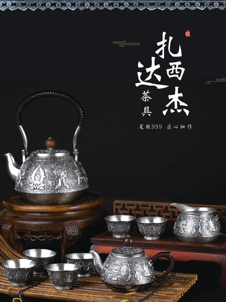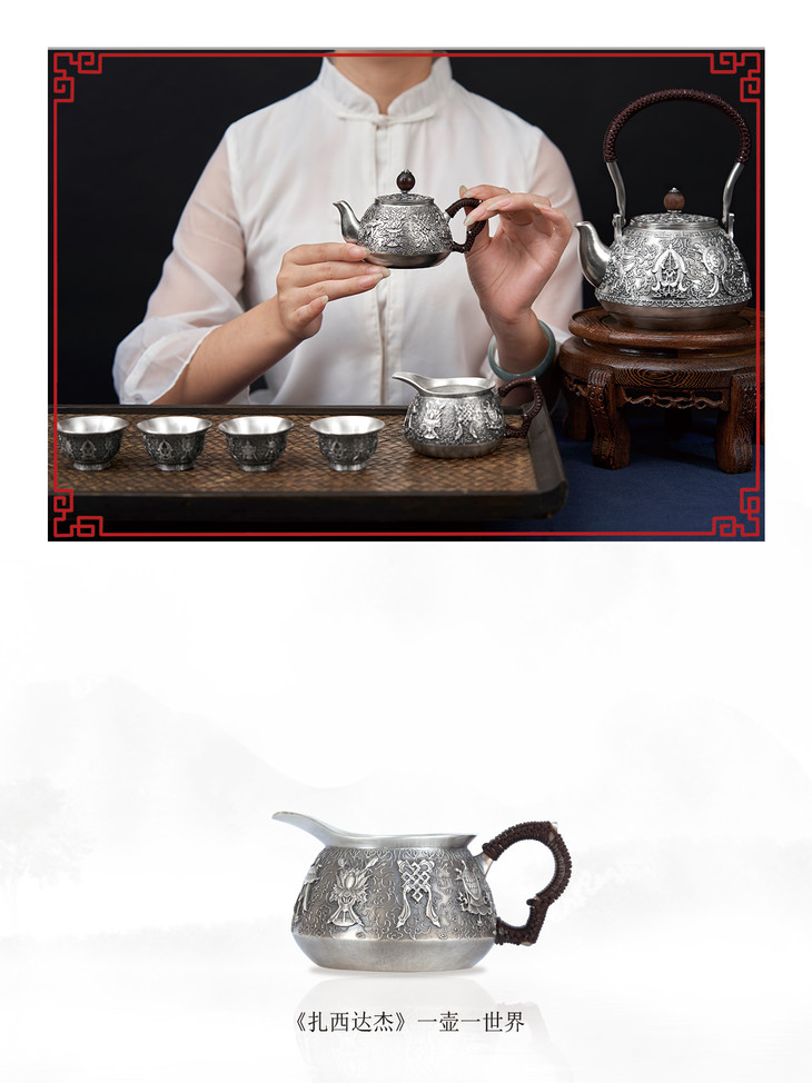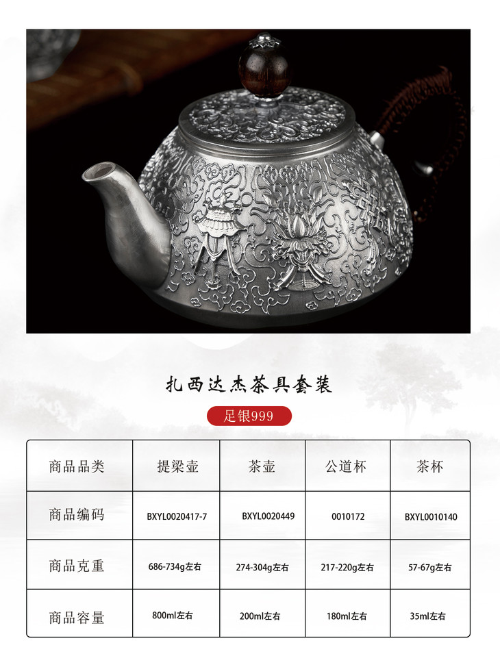 【八宝】扎西达杰-纯银茶壶提梁壶公道杯摆件茶杯摆件套装【BXYL0020417-7】【BXYL0010140】【BXYL0020449】【0010172】2010