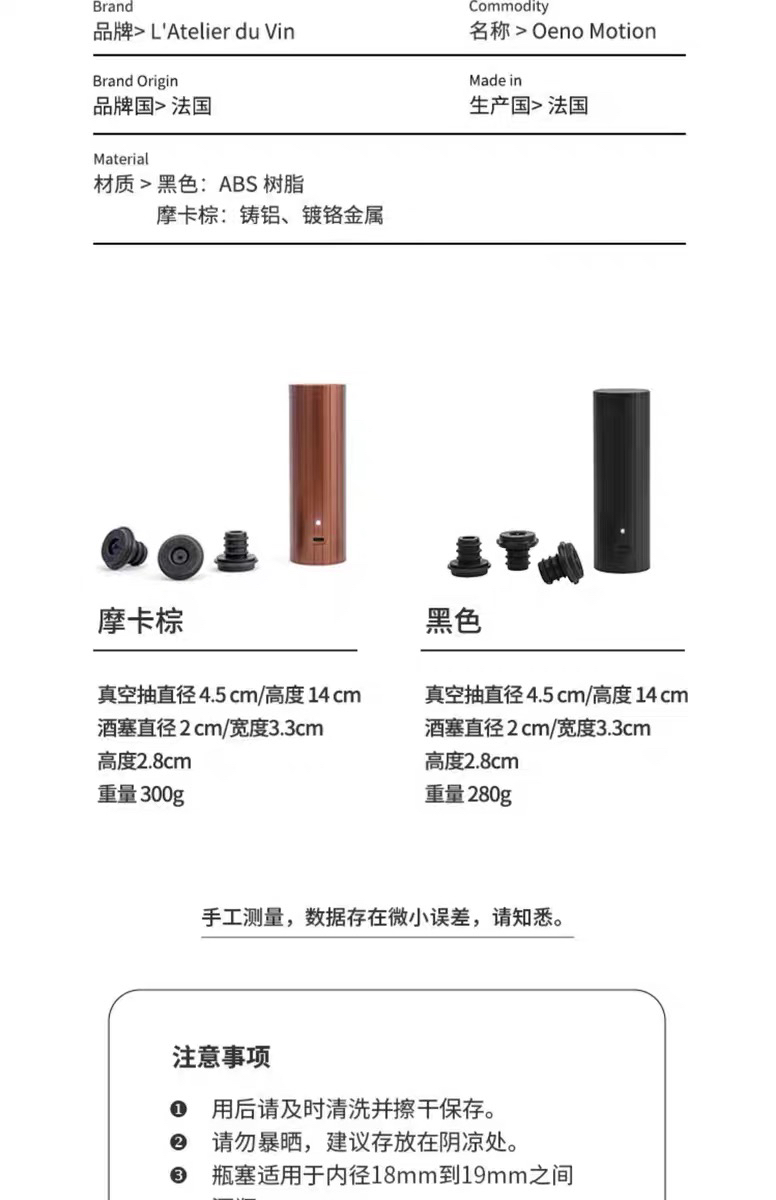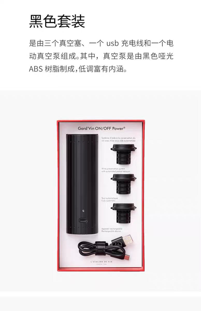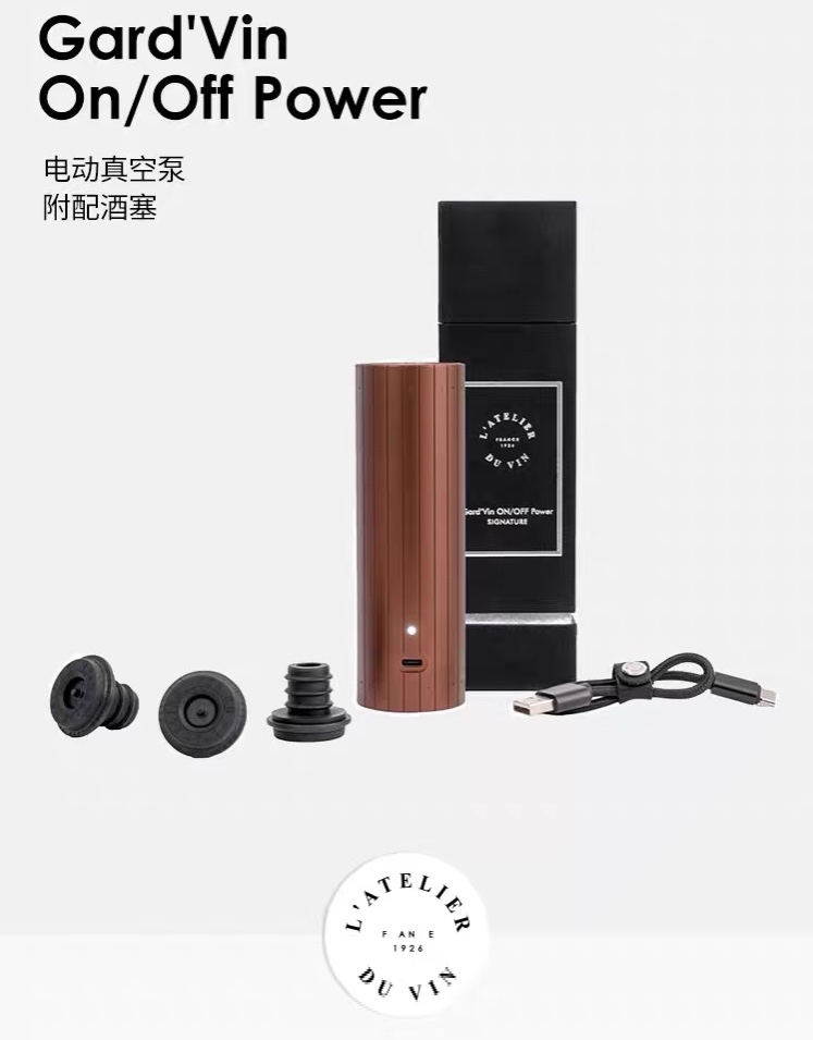 法国L'Atelier du Vin电动红酒塞自动抽真空葡萄酒保鲜密封塞套装
