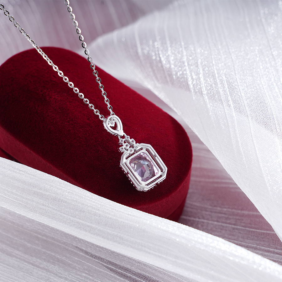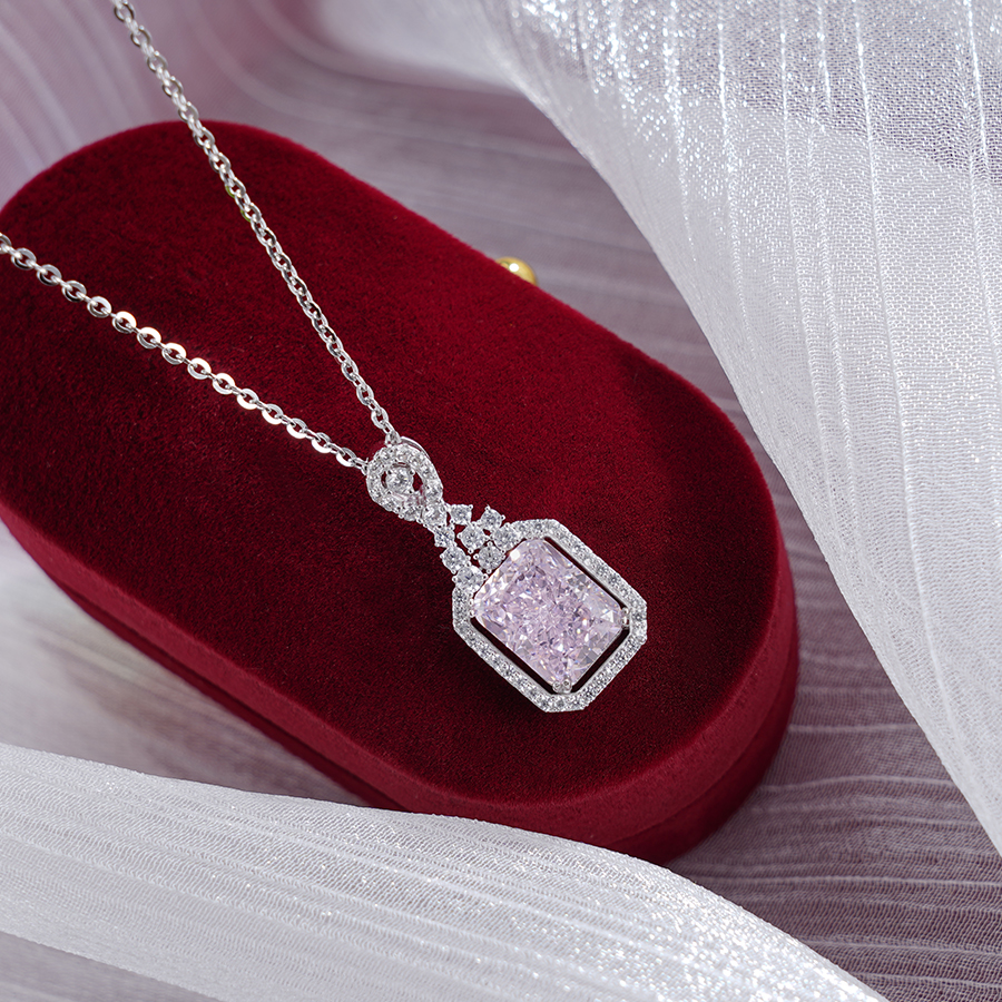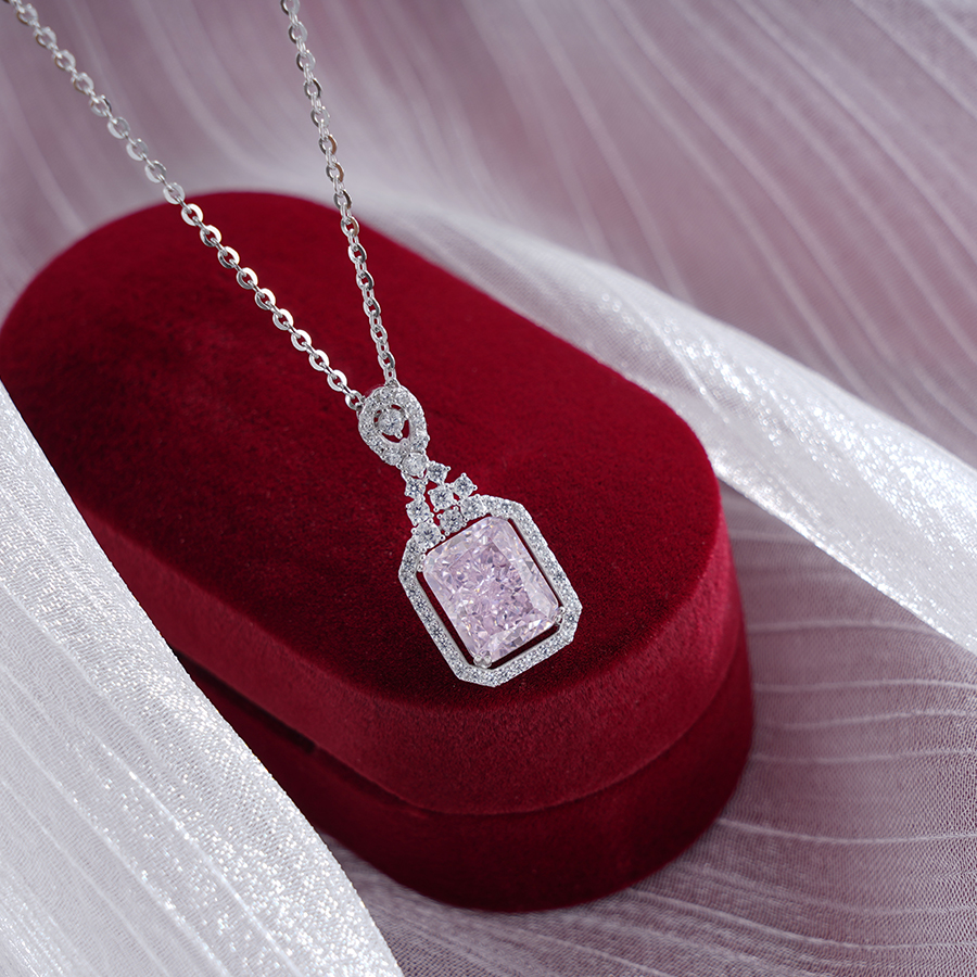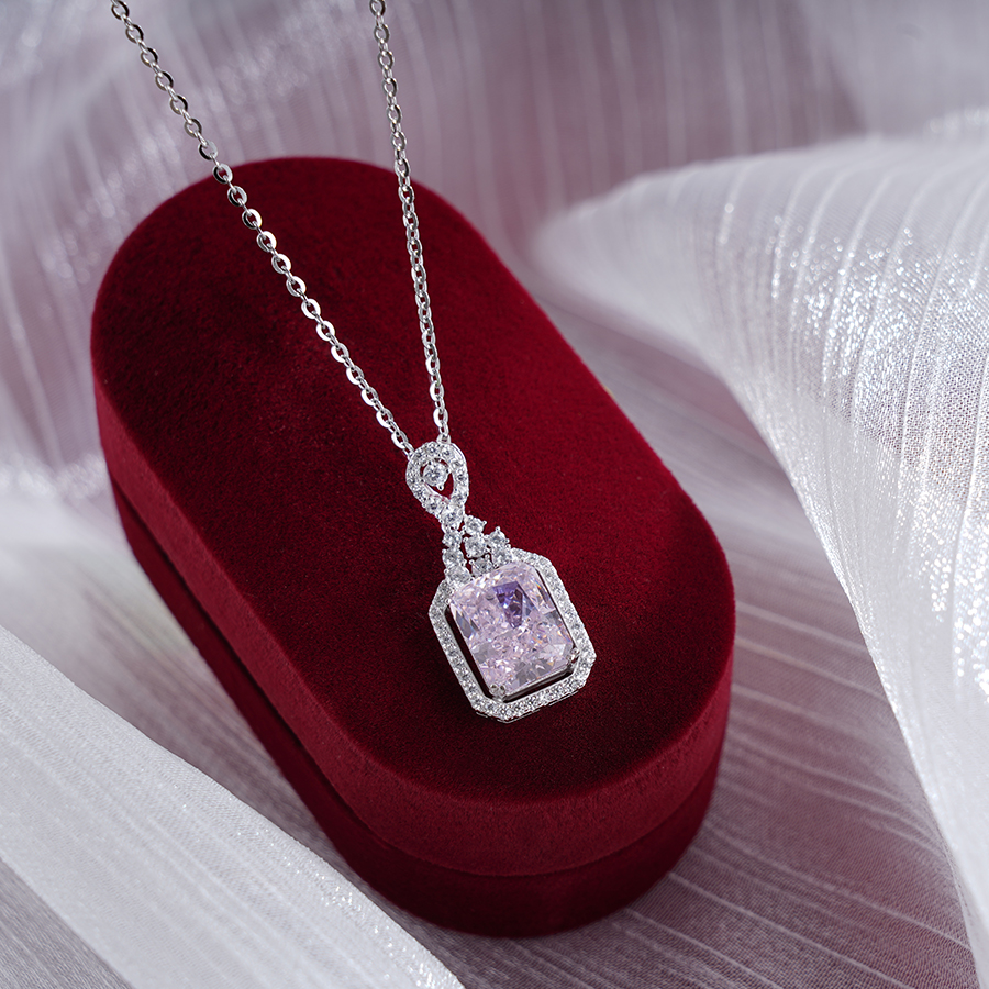 子佩集S925银【粉红之恋】套链【YL-6815】纯银项链时尚粉色方块冰花切锆石2503