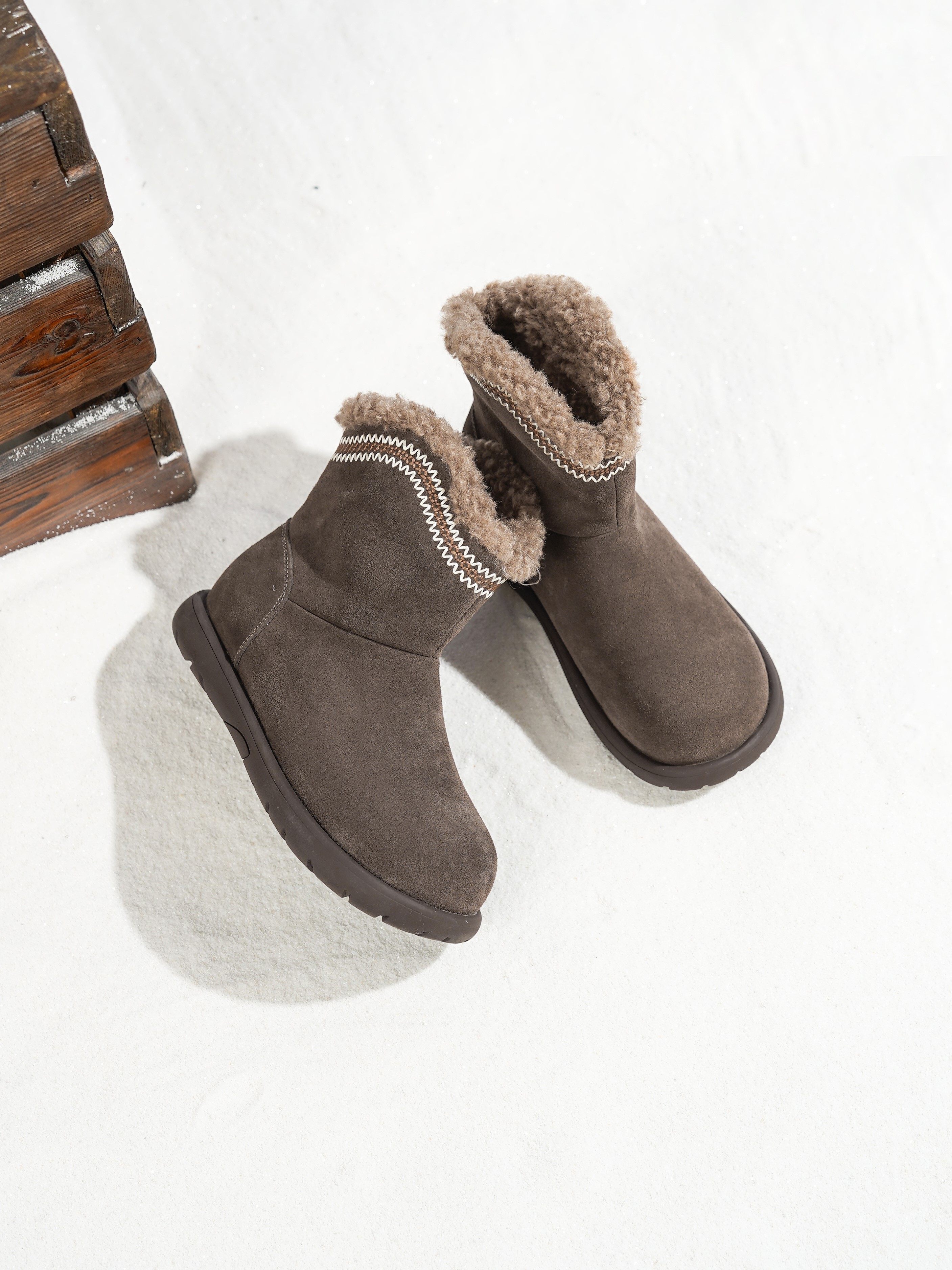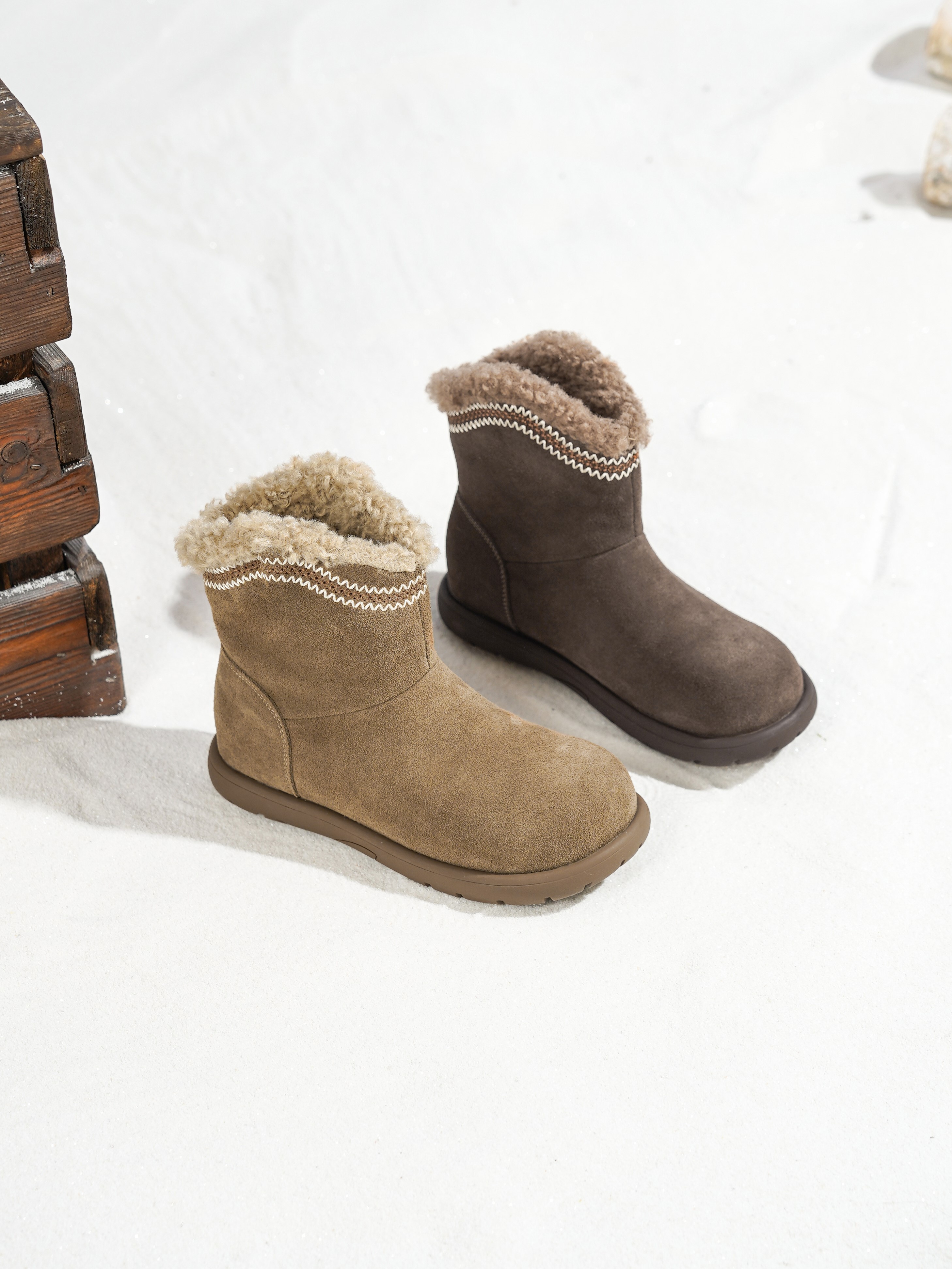 西村名物2025年冬季新款厚底防滑毛绒内里舒适保暖时装短靴切尔西靴T25DS49521