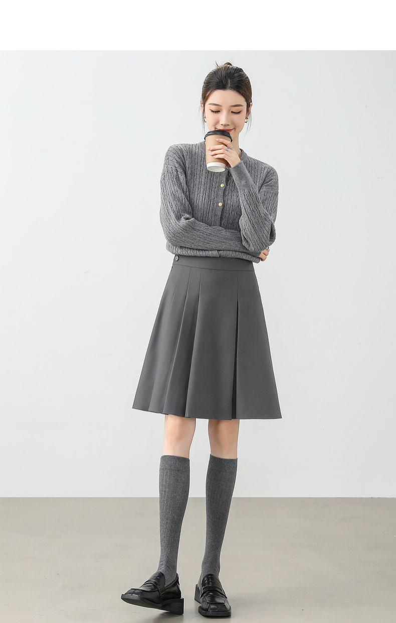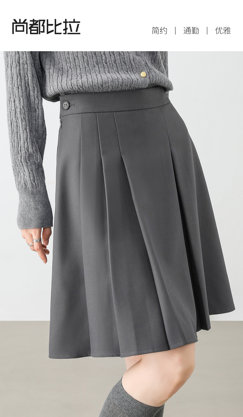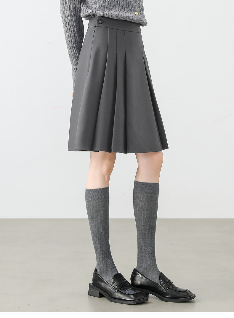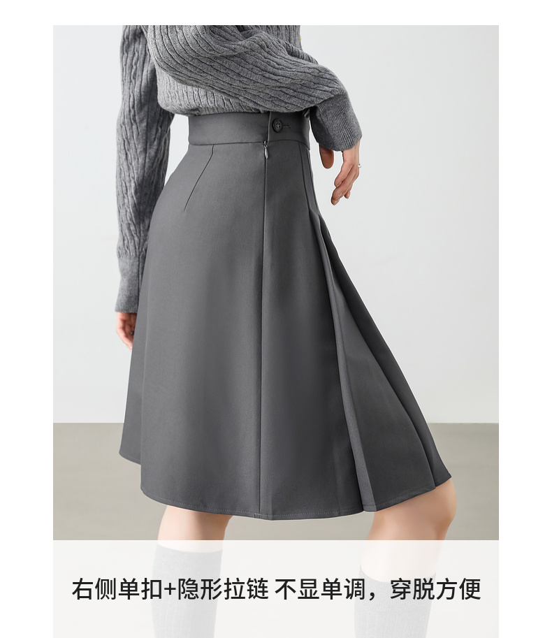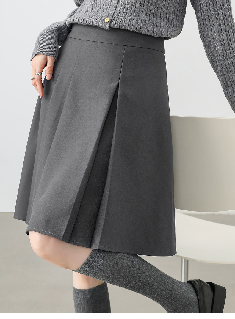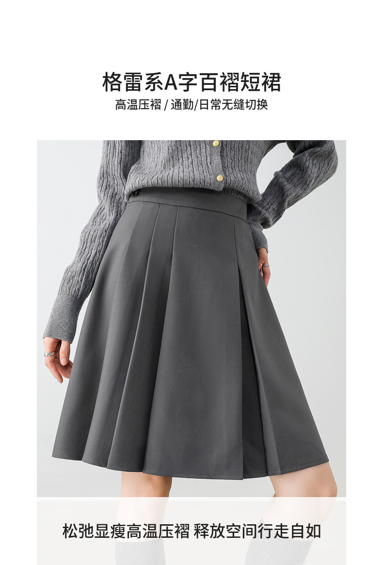 【内购】显瘦显腿长格雷系职场通勤自然腰A字百褶短裙-151Q58683
