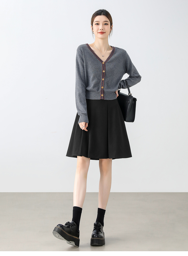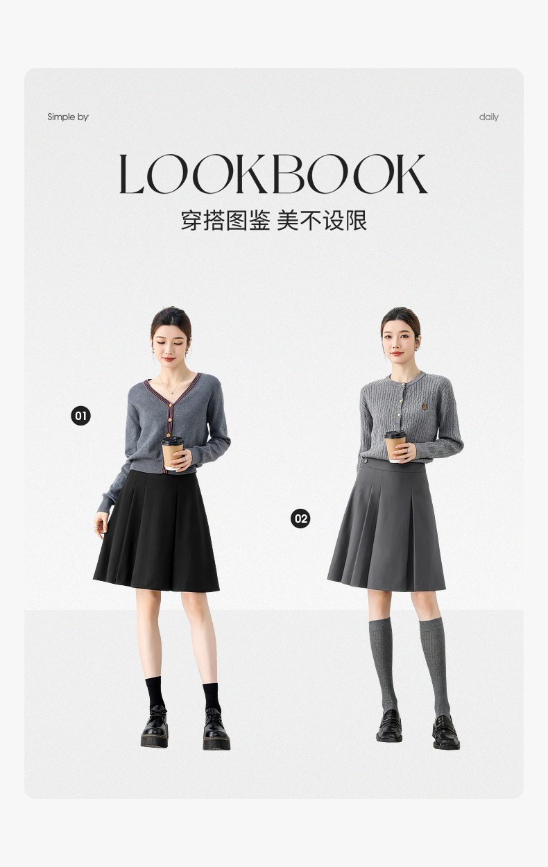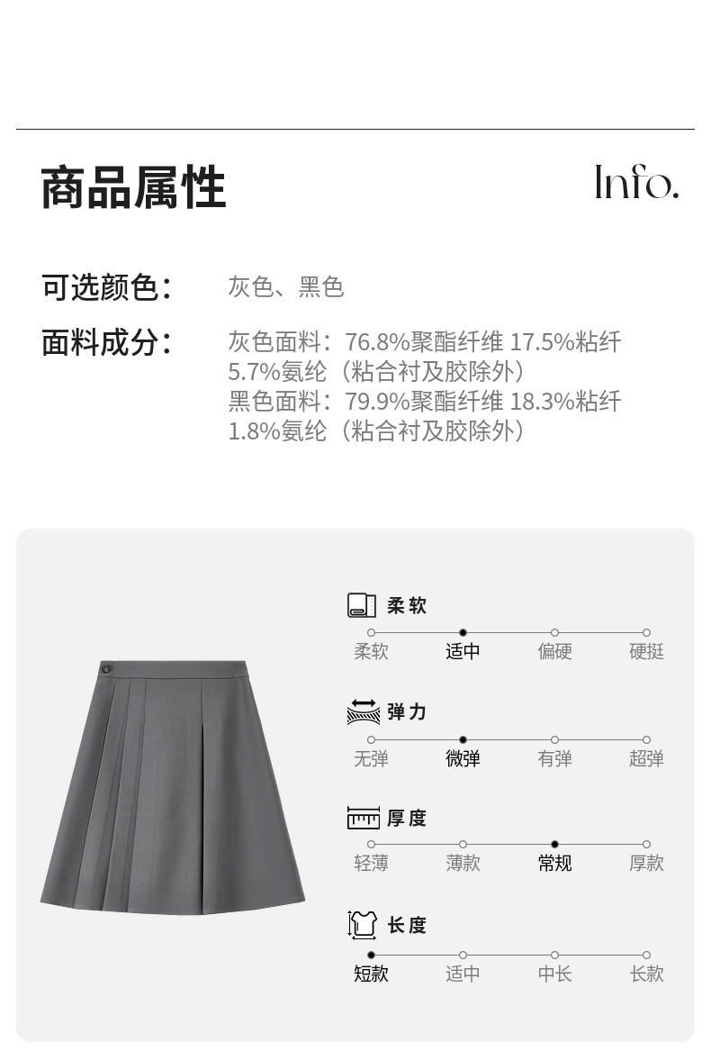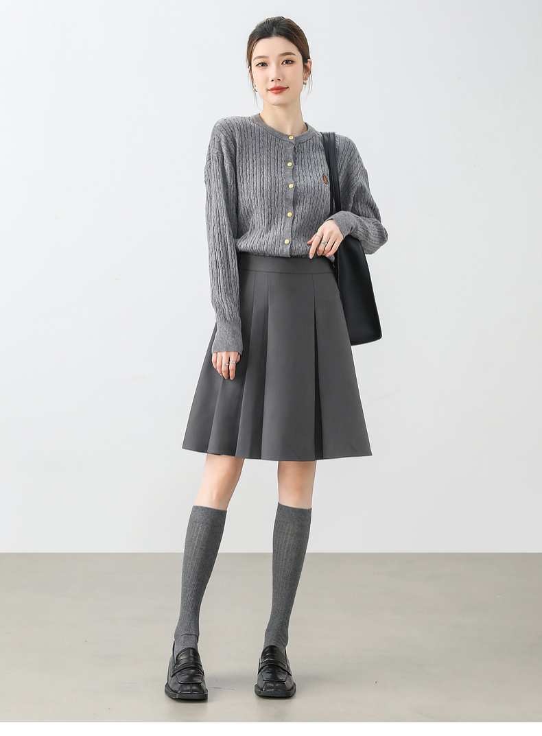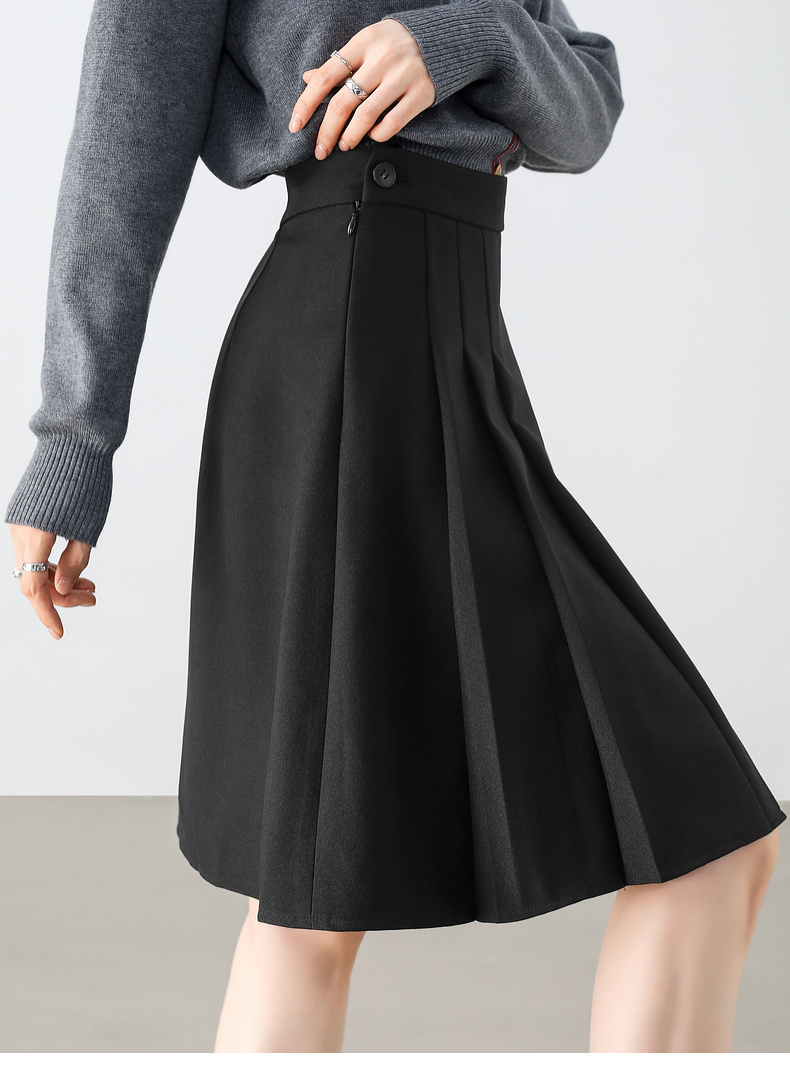 【内购】显瘦显腿长格雷系职场通勤自然腰A字百褶短裙-151Q58683