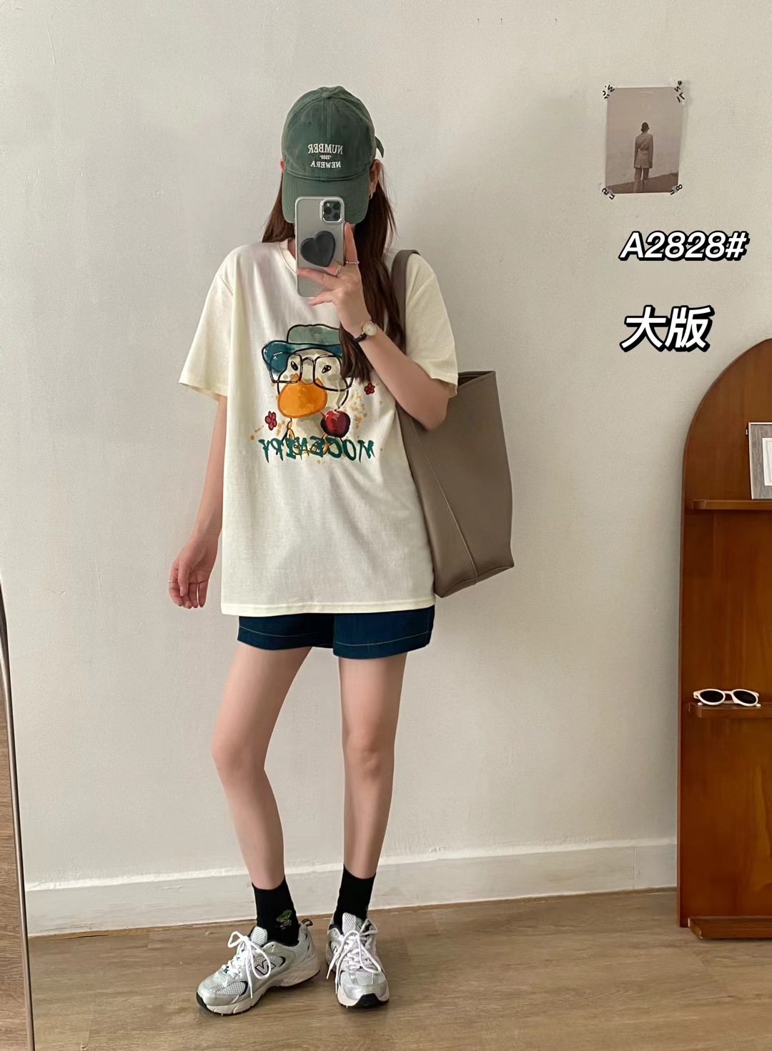 2828 # 大版T恤 杏色 红色 灰色均码 一眼看中的图案!太可爱了吧!