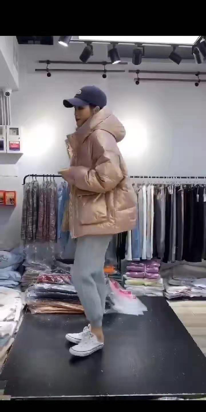 04548356锦娇依羽绒服,粉,黑主打,适合顾客群广,均码号100-150斤都可以穿,免洗面料,短裤,牛仔裤是最佳搭配。