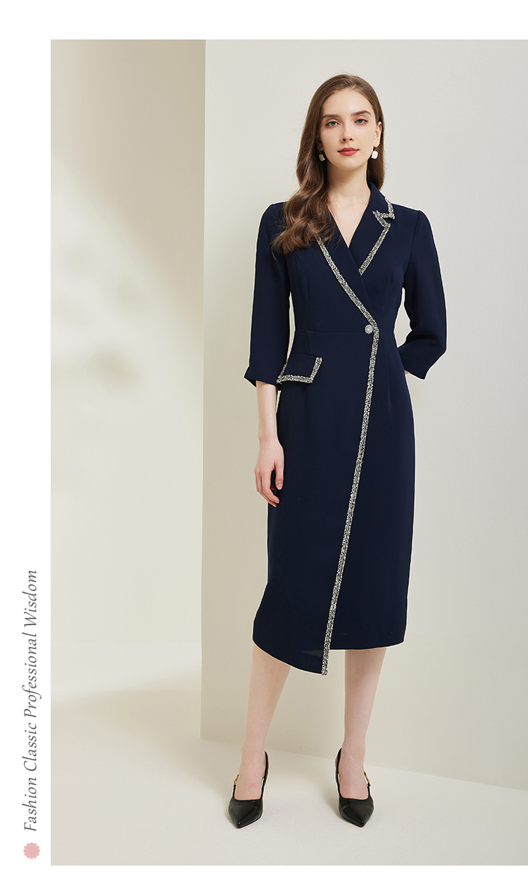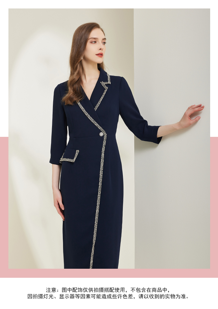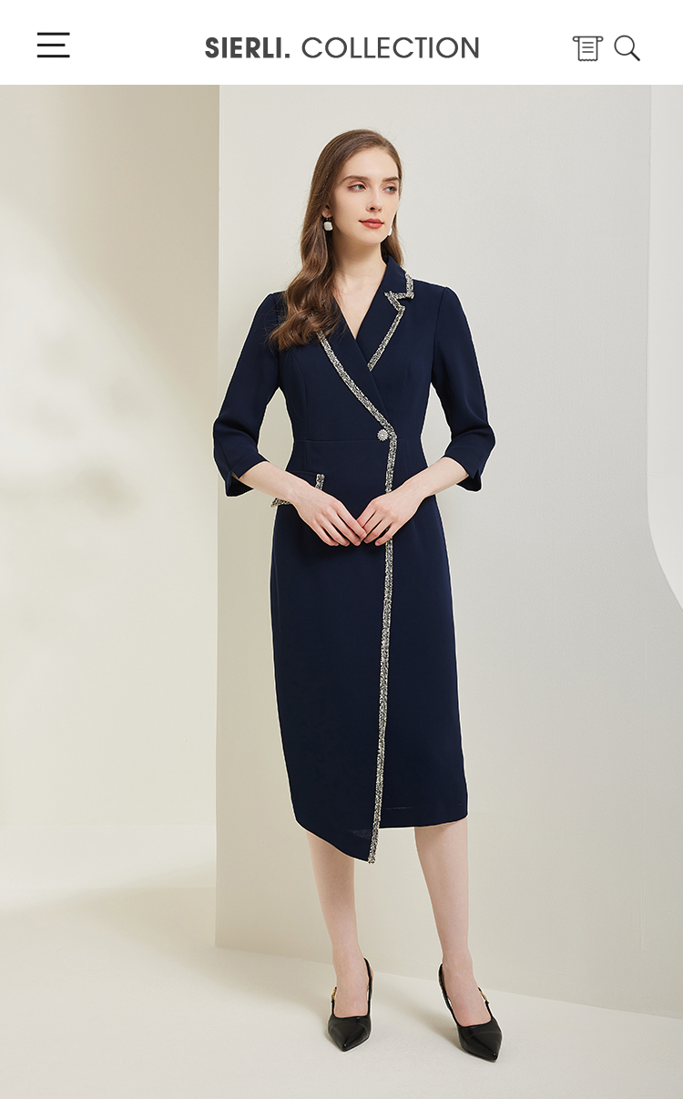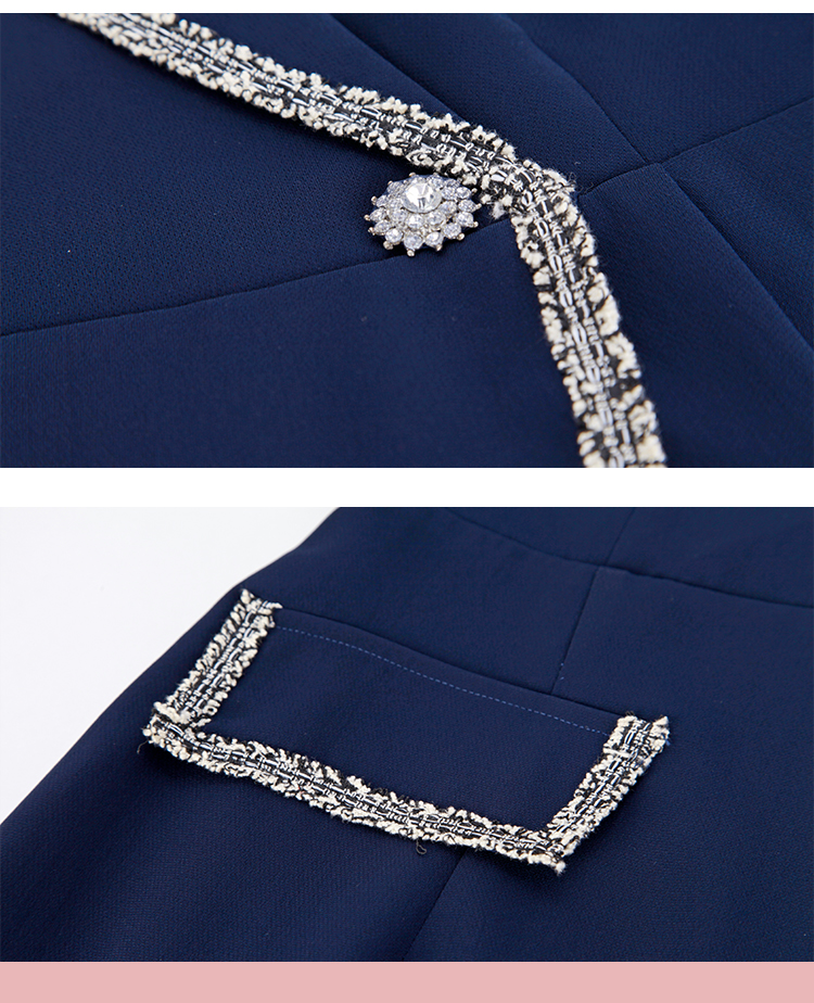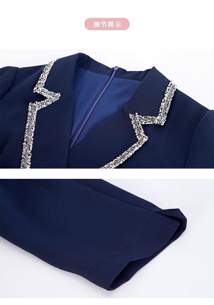 NG824斯尔丽瑟俪2023新款小香风花边撞色不对称设计西装领显瘦连衣裙