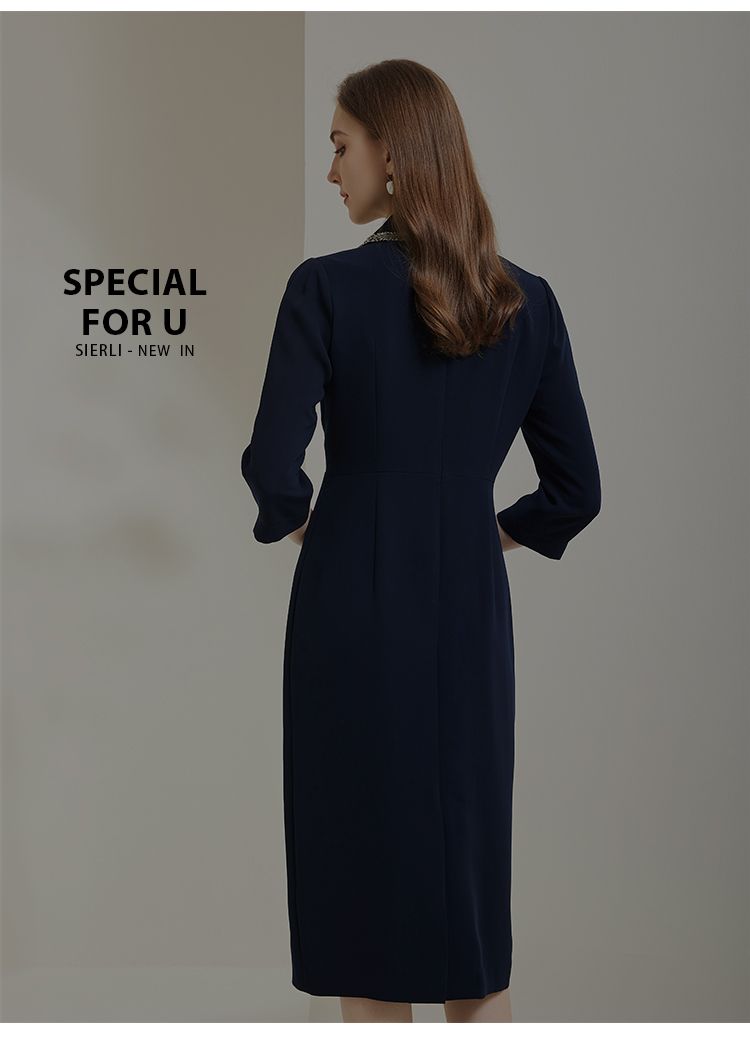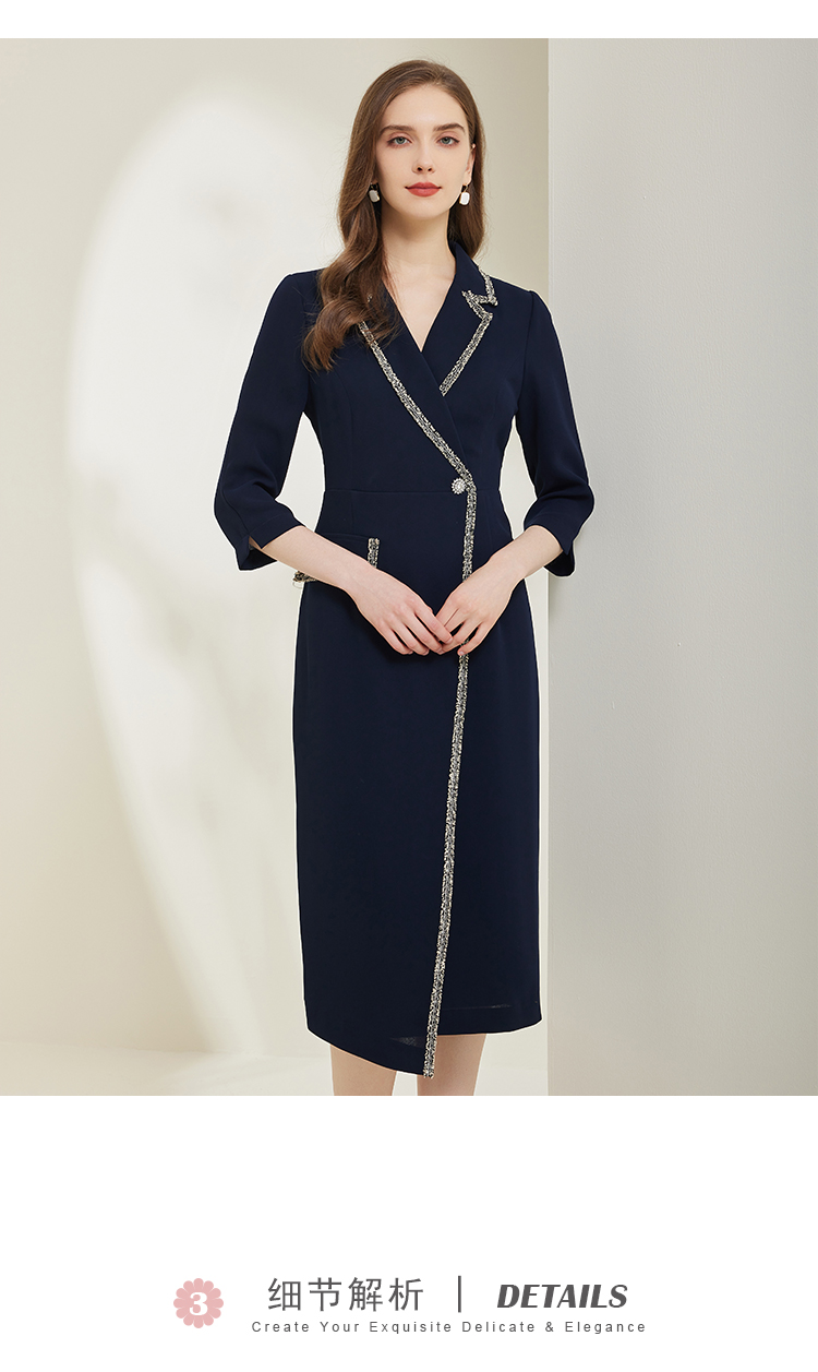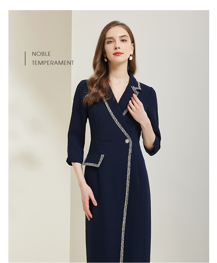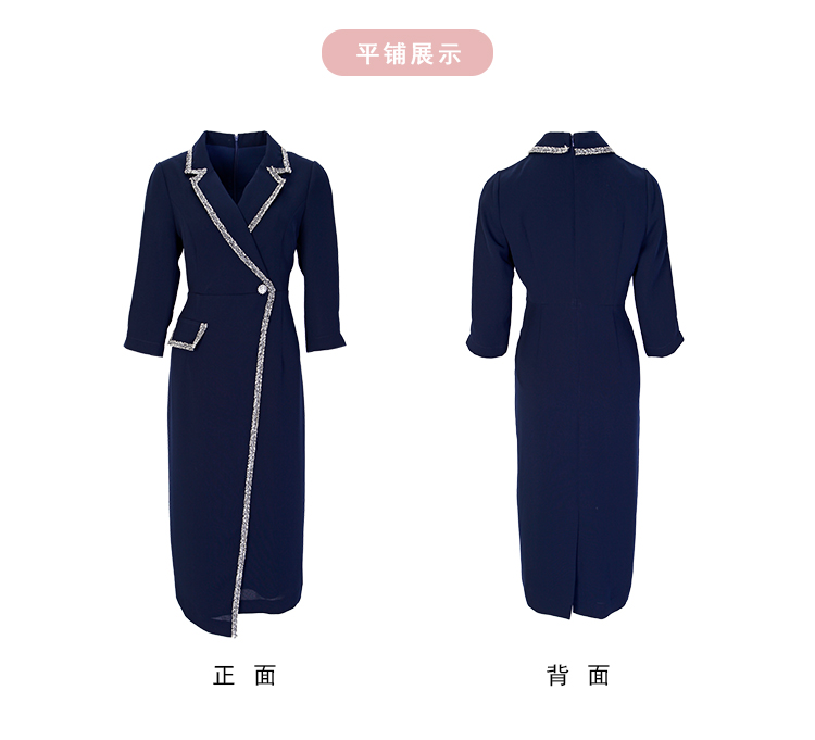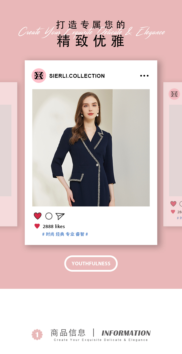 NG824斯尔丽瑟俪2023新款小香风花边撞色不对称设计西装领显瘦连衣裙