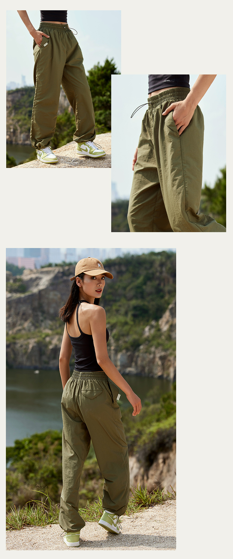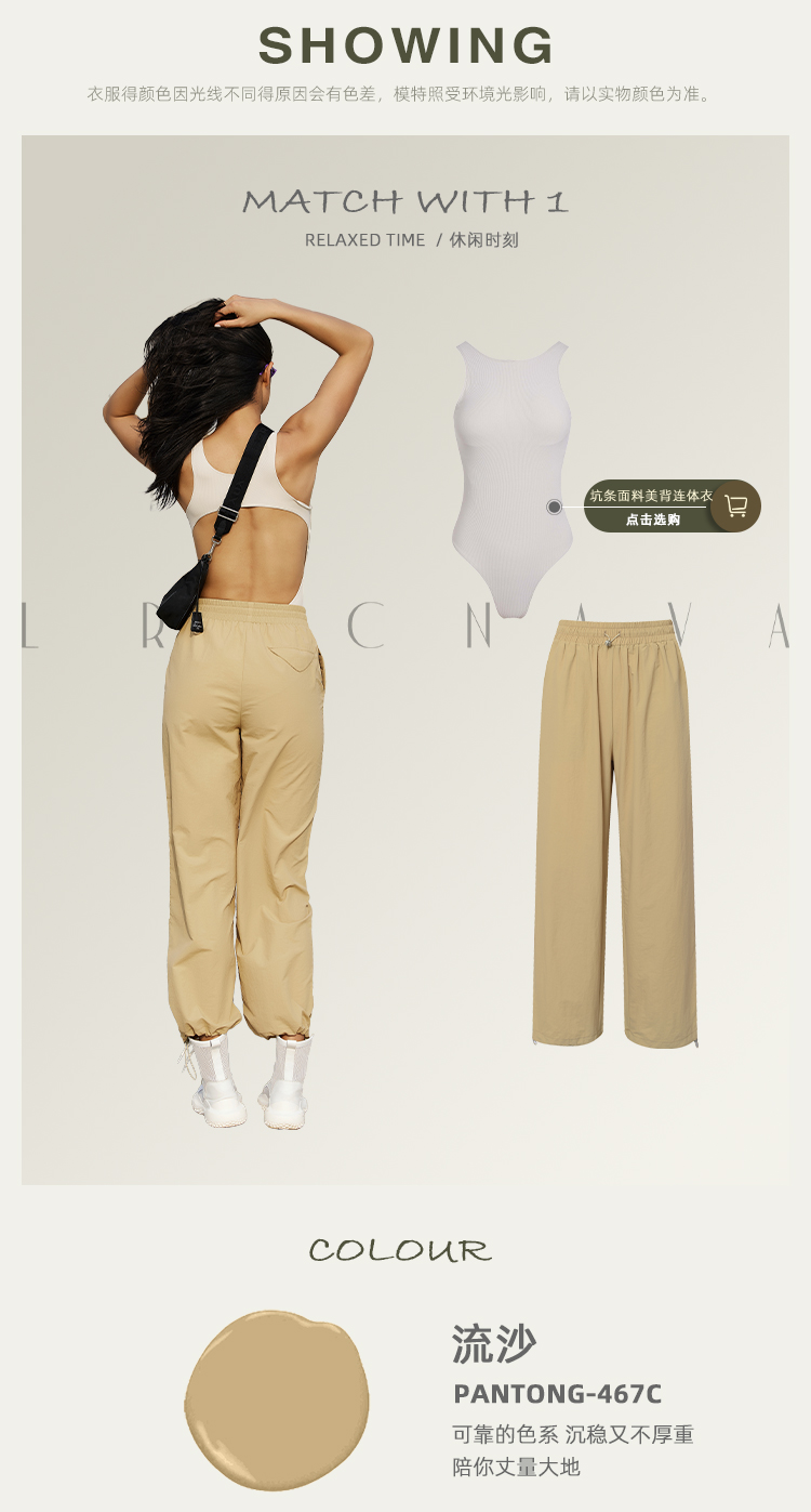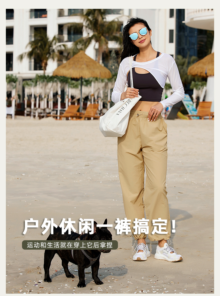 【户外防水面料】宽松轻薄运动休闲长裤-腰口抽绳 脚口束口