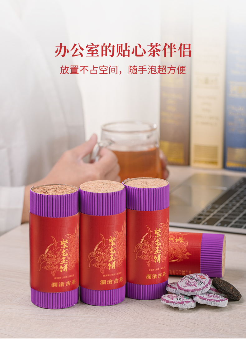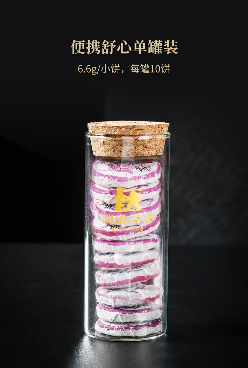 澜沧古茶紫龙玉饼普洱茶熟茶云南茶叶紫芽熟普便携迷你小饼66克 1罐
