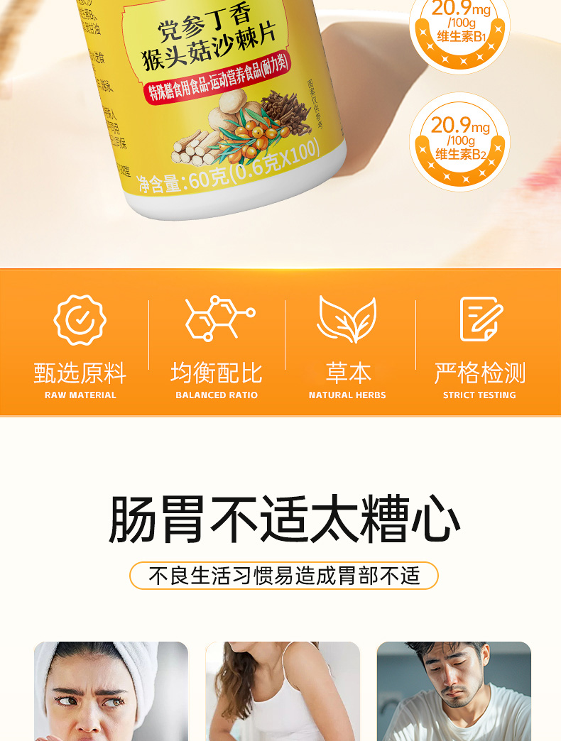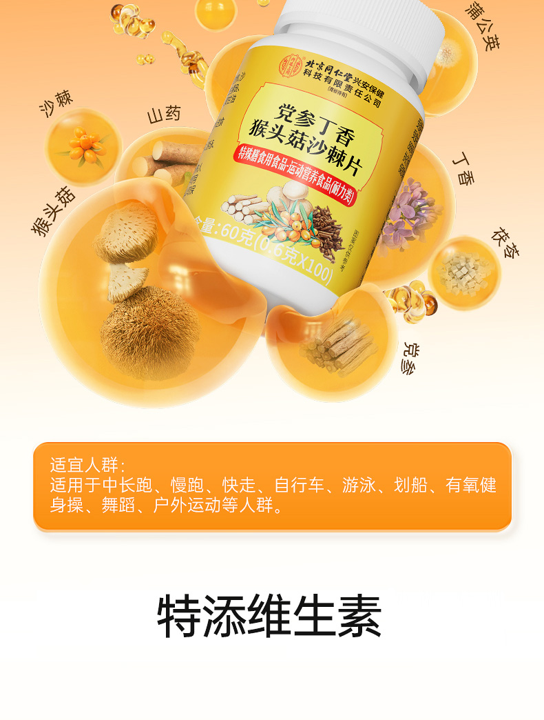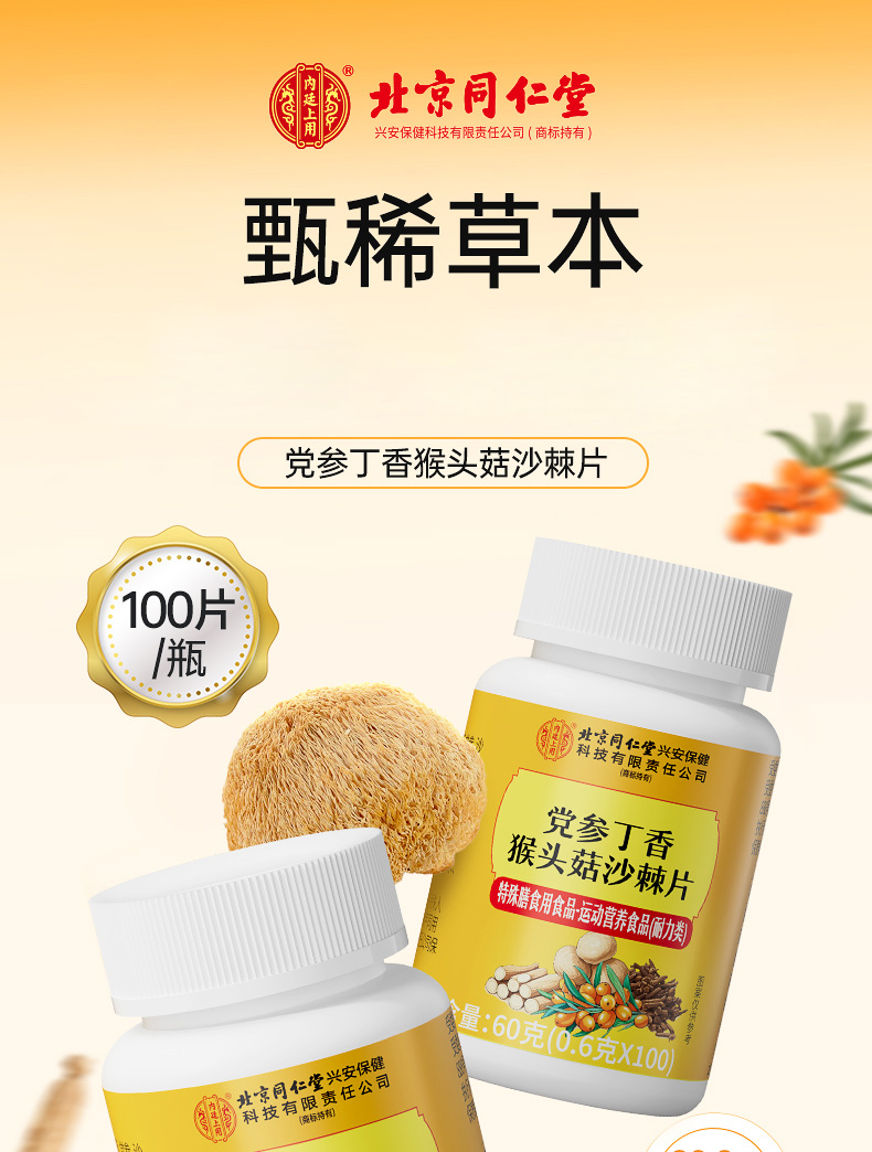 北京同仁堂 内廷上用 党参丁香猴头菇沙棘片60克(0.6克X100片)