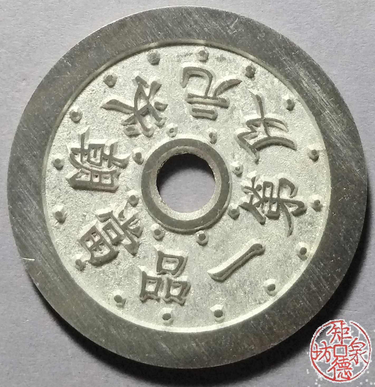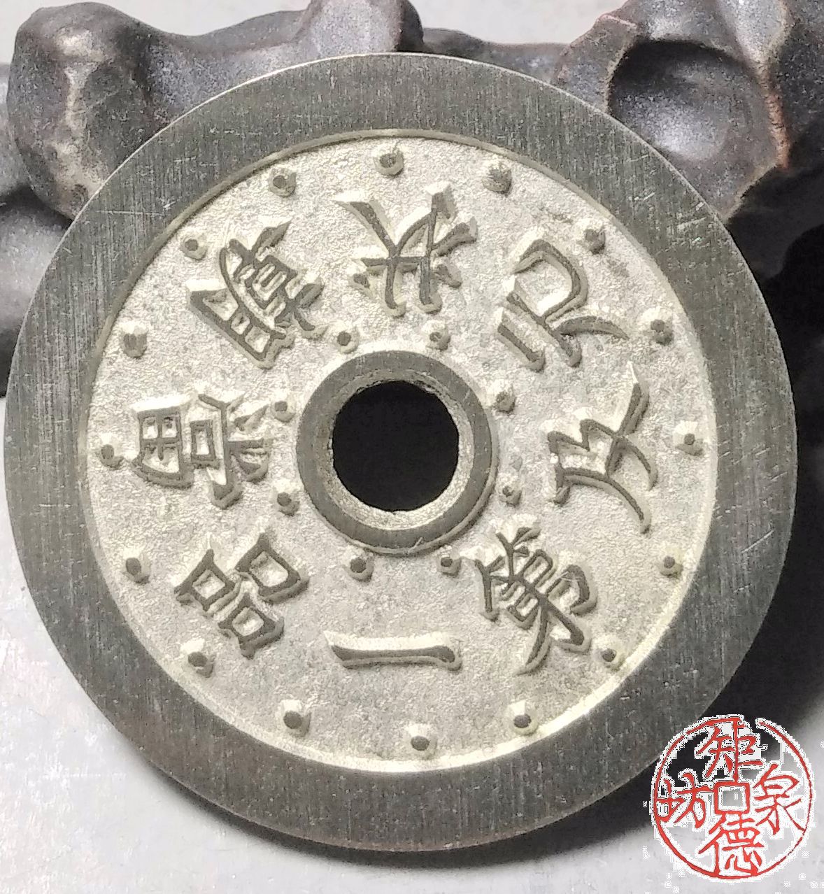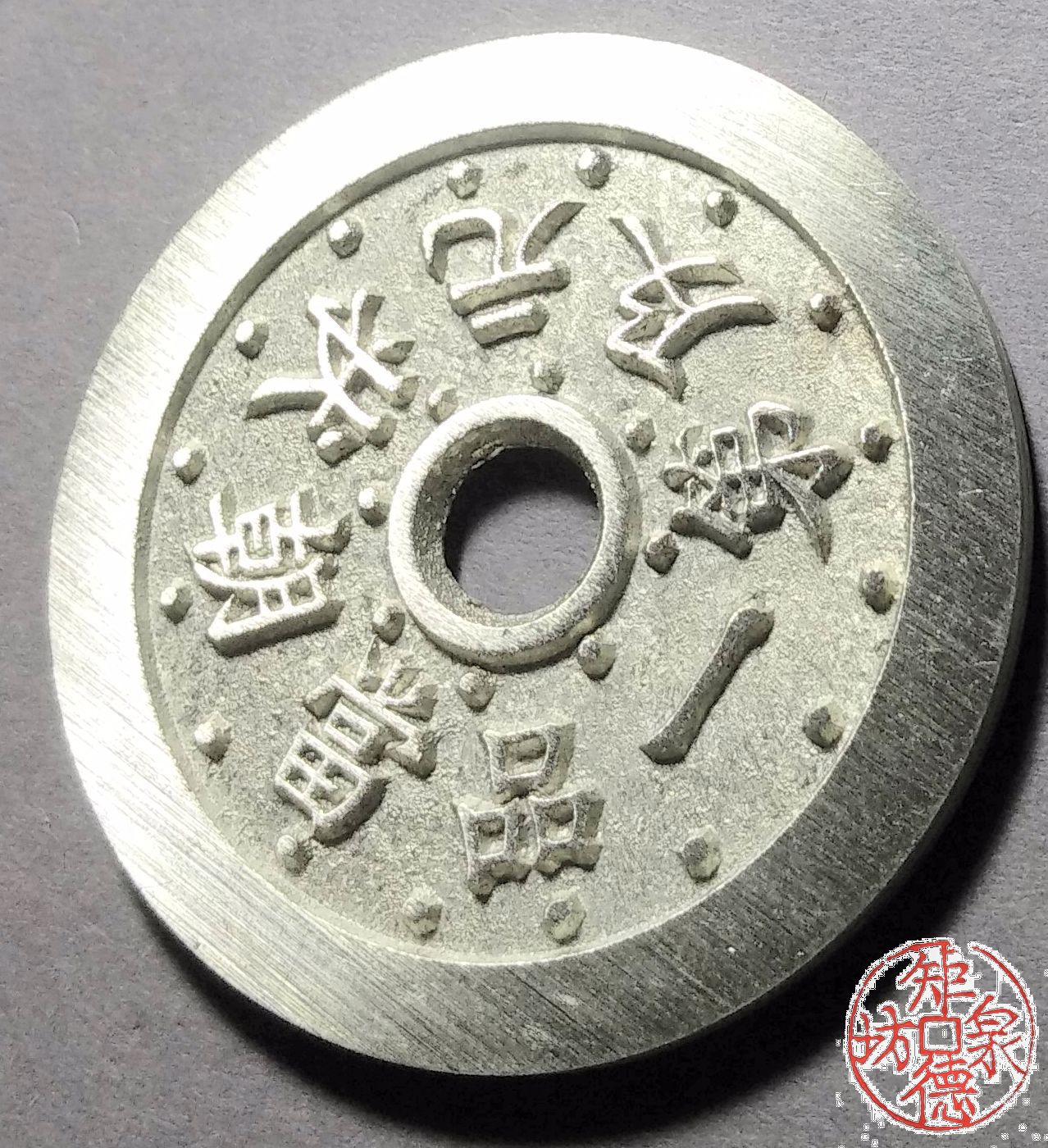 为了尽量还原古代钱币的文字神韵与时代铸造特征,每一枚都进行手工修刀、打磨。会有打磨痕迹、刻刀痕迹,铸造气孔或者微小沙眼,这正是手工与机器制作的区别,并非瑕疵。