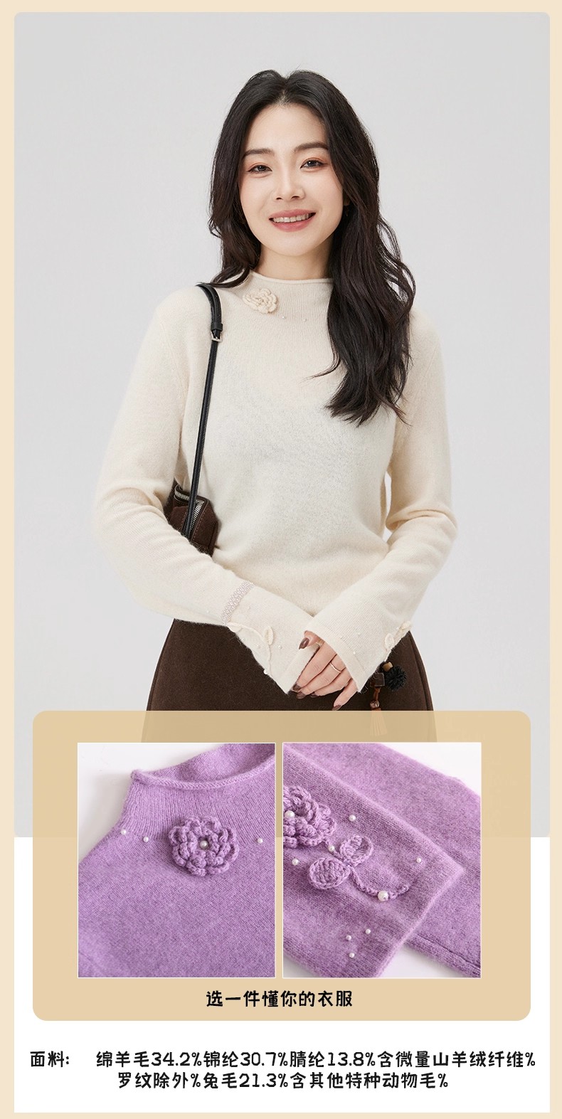 【门店同款】ENJOY冬季“暖冬软糖”重工钩花半高领 168099649