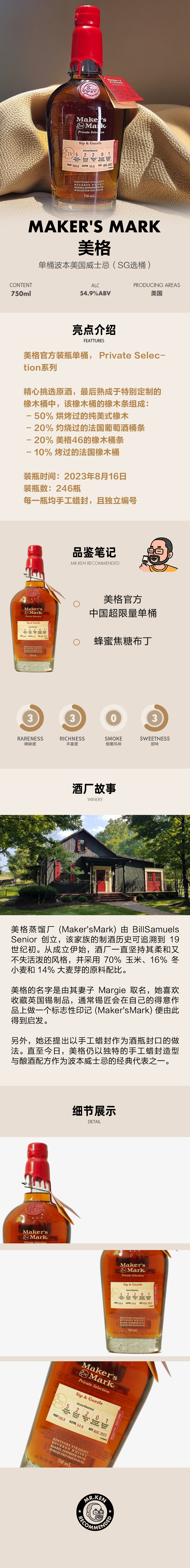 美格(Maker's Mark)单桶波本美国威士忌(SG选桶)