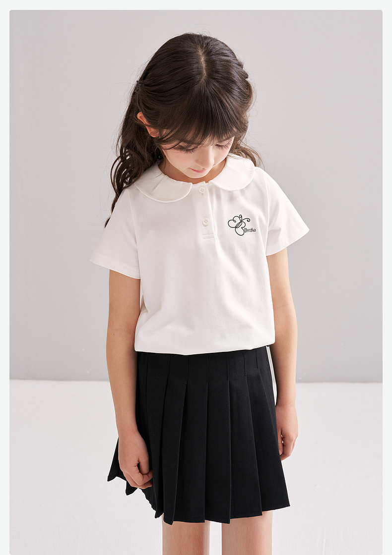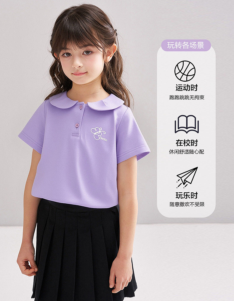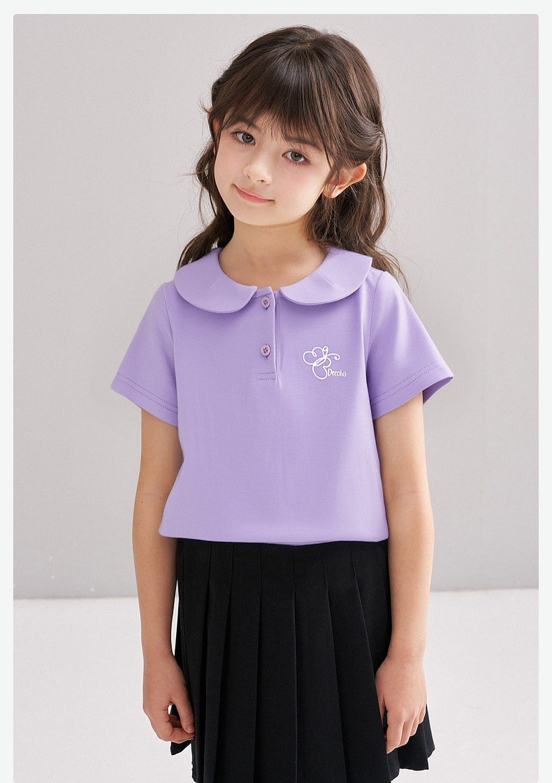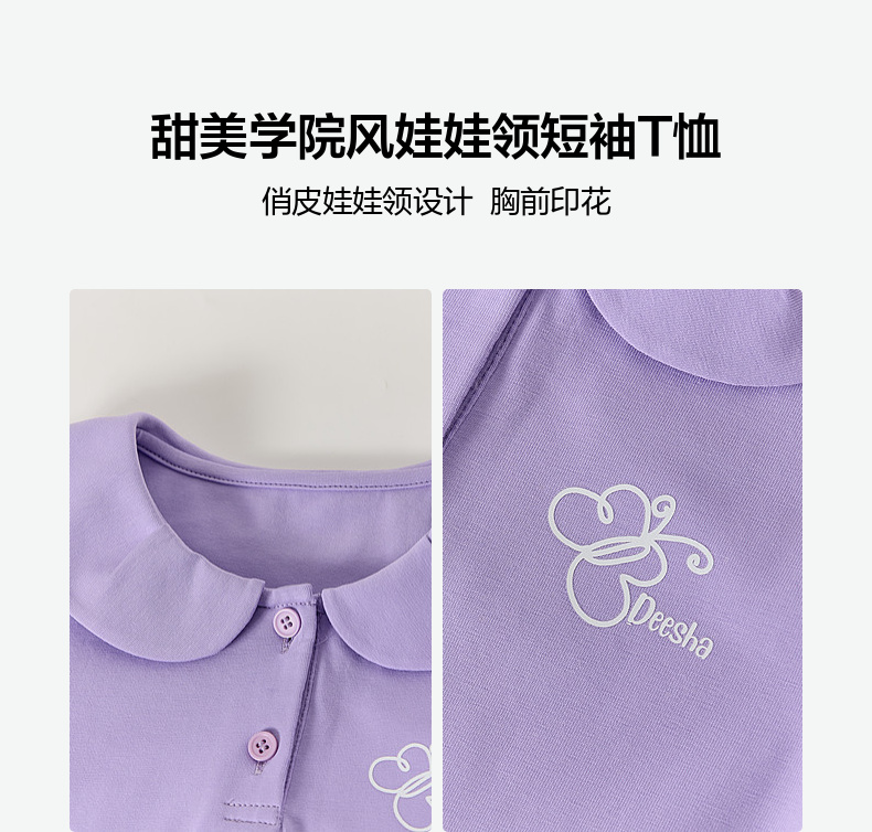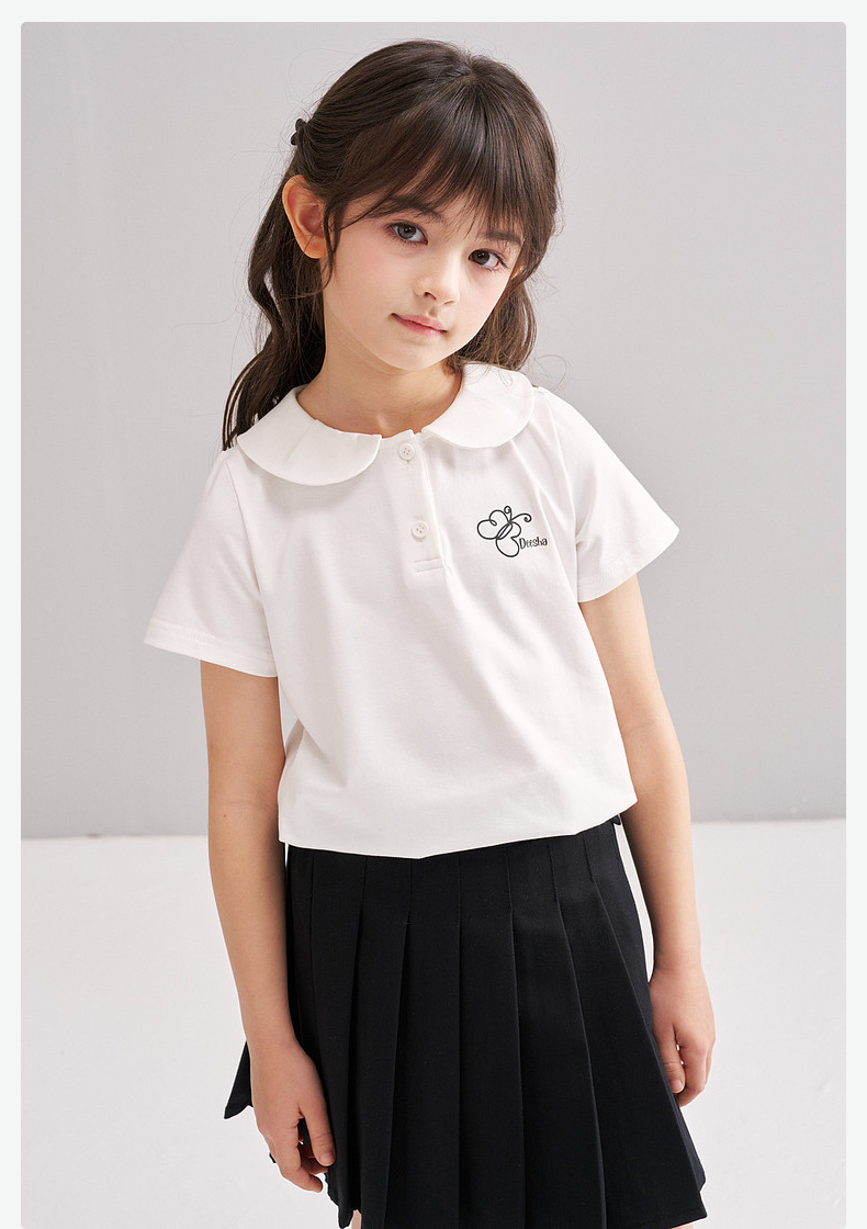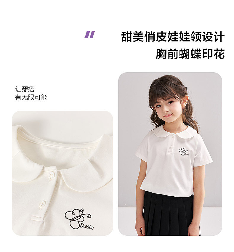 笛莎/Deesha 【松饼熊】2026年夏季新款女童甜美学院风娃娃领短袖T恤