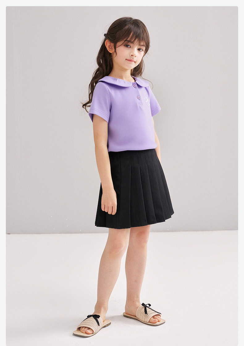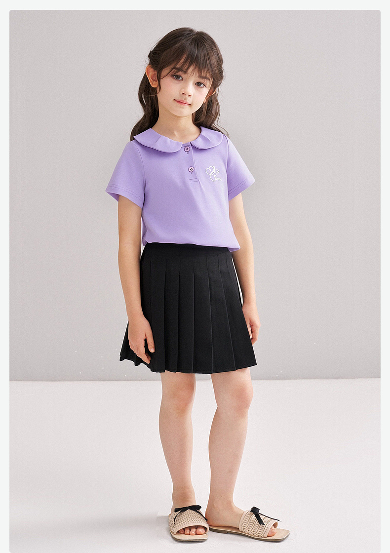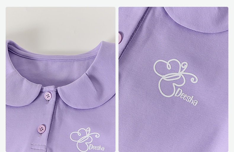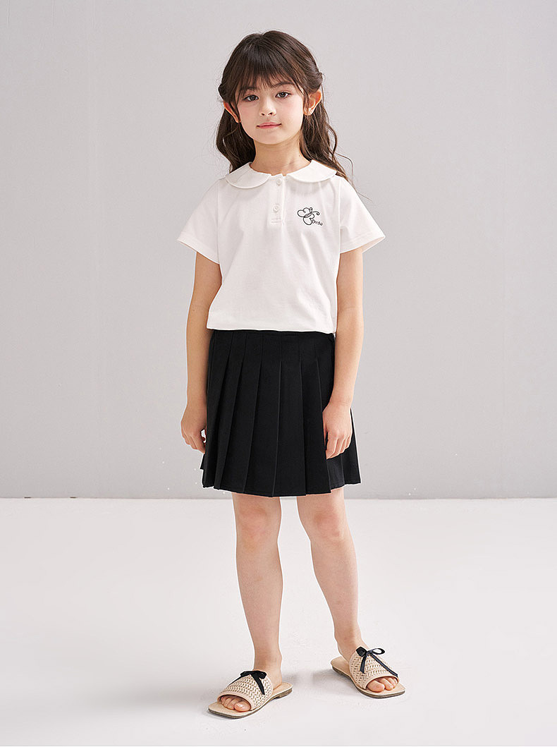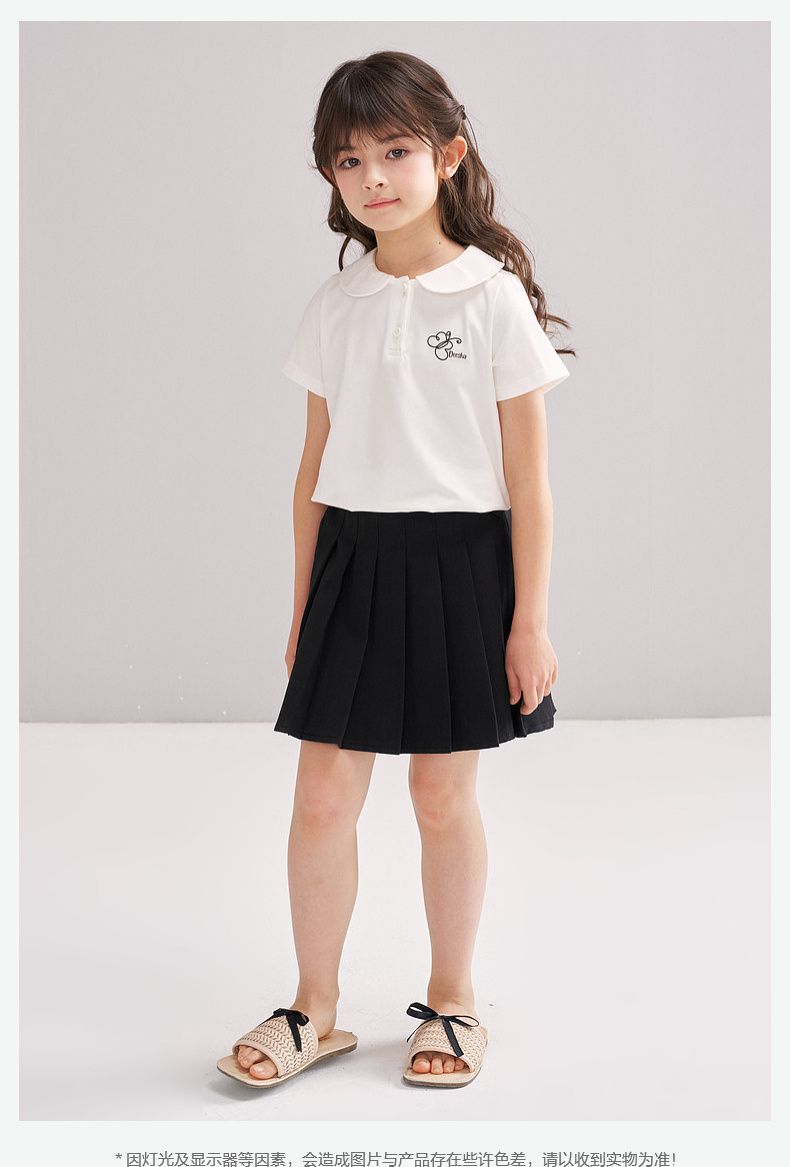 笛莎/Deesha 【松饼熊】2026年夏季新款女童甜美学院风娃娃领短袖T恤