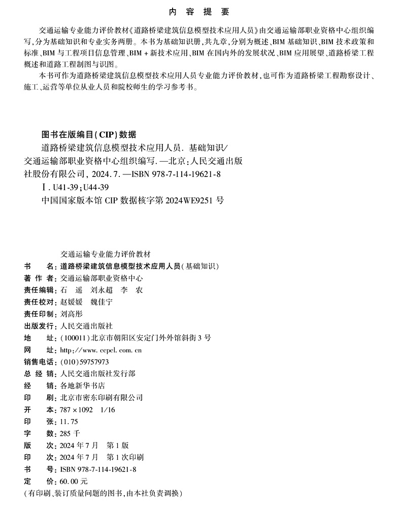 书名:道路桥梁建筑信息模型技术应用人员(基础知识)