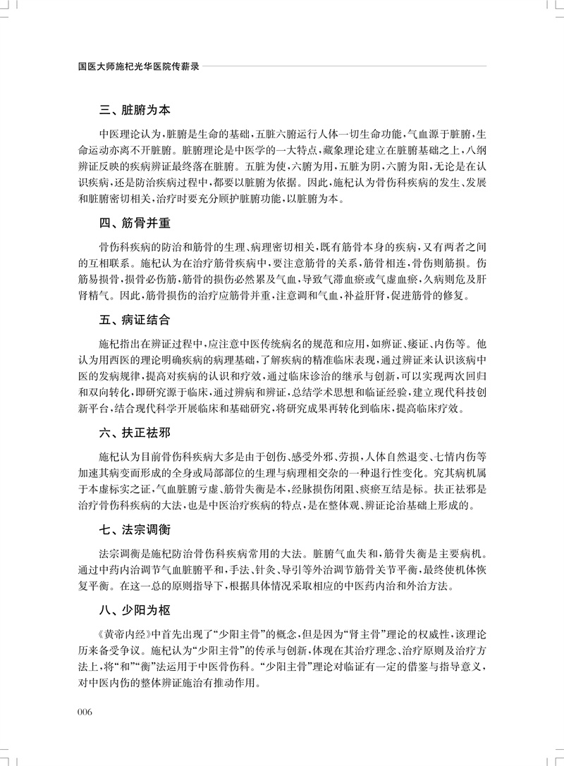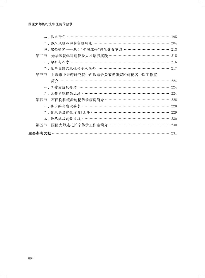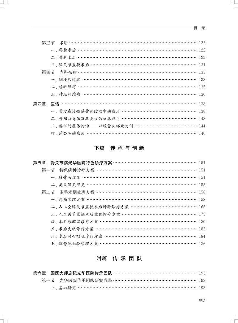 《国医大师施杞光华医院传薪录》是国医大师施杞教授在上海中医药大学附属光华医院从事临床、科研、带教等工作的完整记录。全书分为上篇、中篇、下篇和附篇。上篇总论,介绍了施杞的学术思想与临证经验;中篇为医案与医话,包含了施杞在光华医院骨伤科的临证医案;下篇为传承与创新,介绍了施杞指导下形成的骨关节病特色诊疗方案;附篇介绍了施杞在光华医院的团队传承情况。 本书围绕国医大师施杞在光华医院的临证经验展开,内容详实,具有创新性。书中总结了施杞治疗骨关节病的“光华方案”,其中有不少药物已取得专利,对骨伤科或风湿病科均有重要的参考价值。本书适于中医骨伤专业及名医经验传承研究人员阅读,也适于中医流派研究及师承教育研究工作者参考使用。