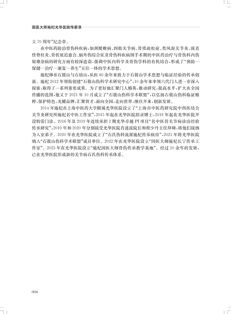国医大师施杞光华医院传薪录 肖涟波 主编 适于中医骨伤专业及名医经验传承研究人员阅读 9787547868805 上海科学技术出版社
